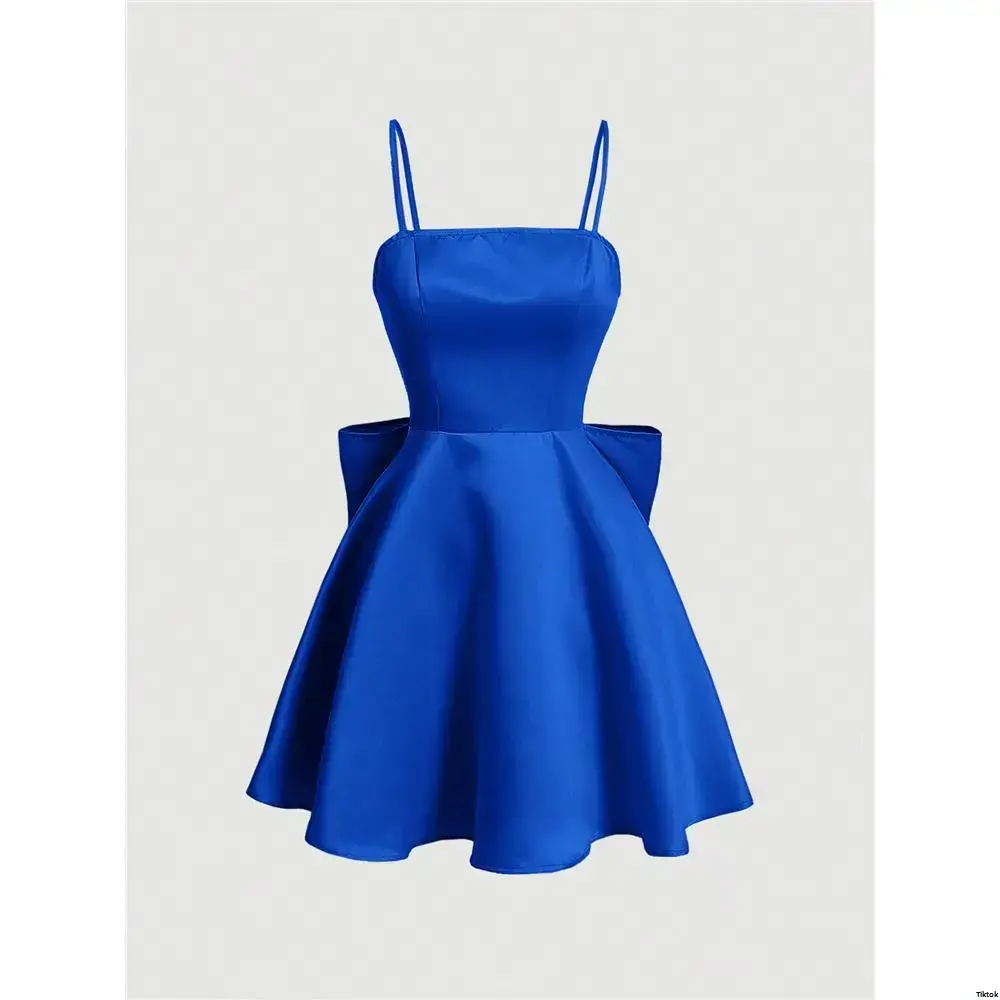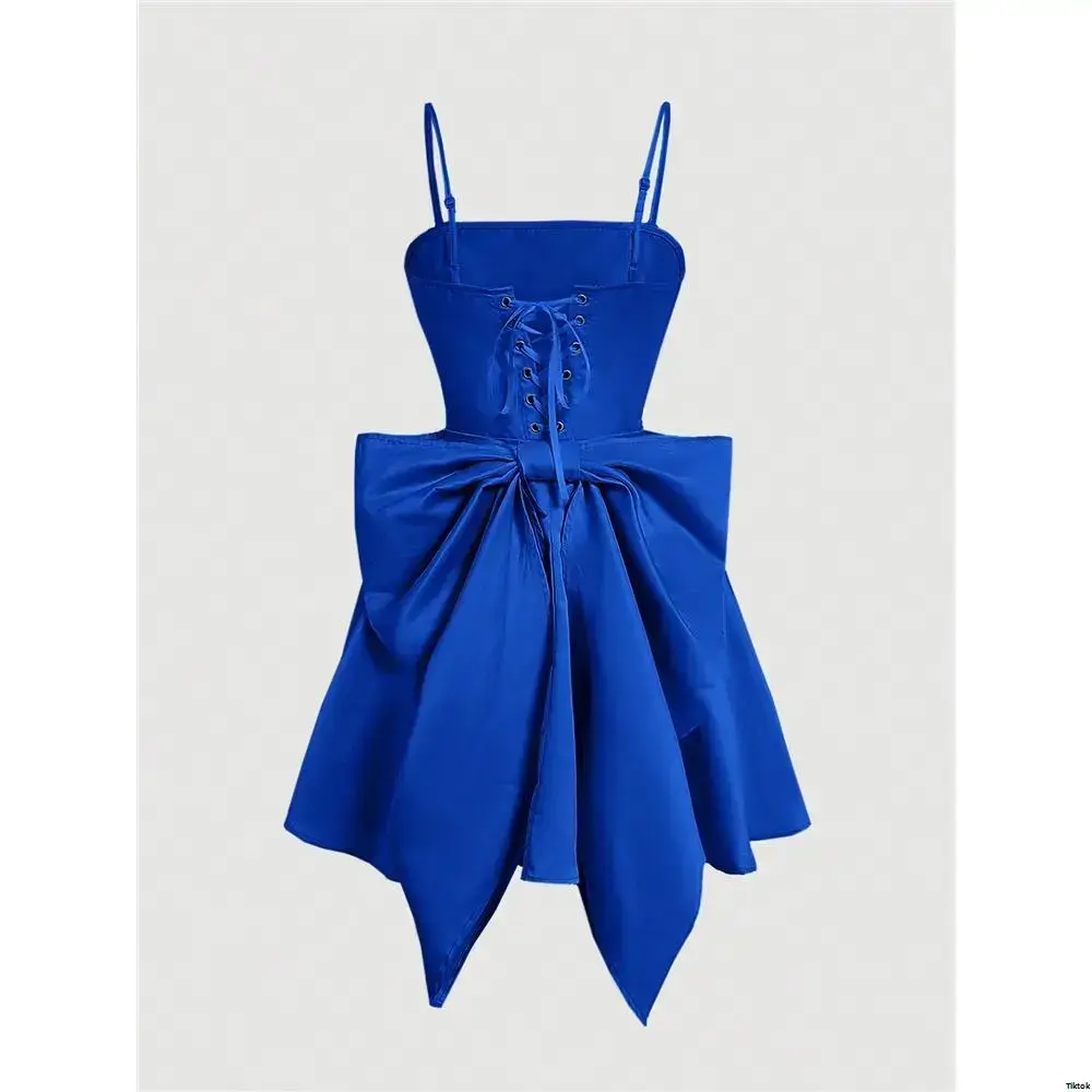 5. Camisole Decor Bow Back Butterfly Color s Women tiktok MOD Solid Elegant Dress