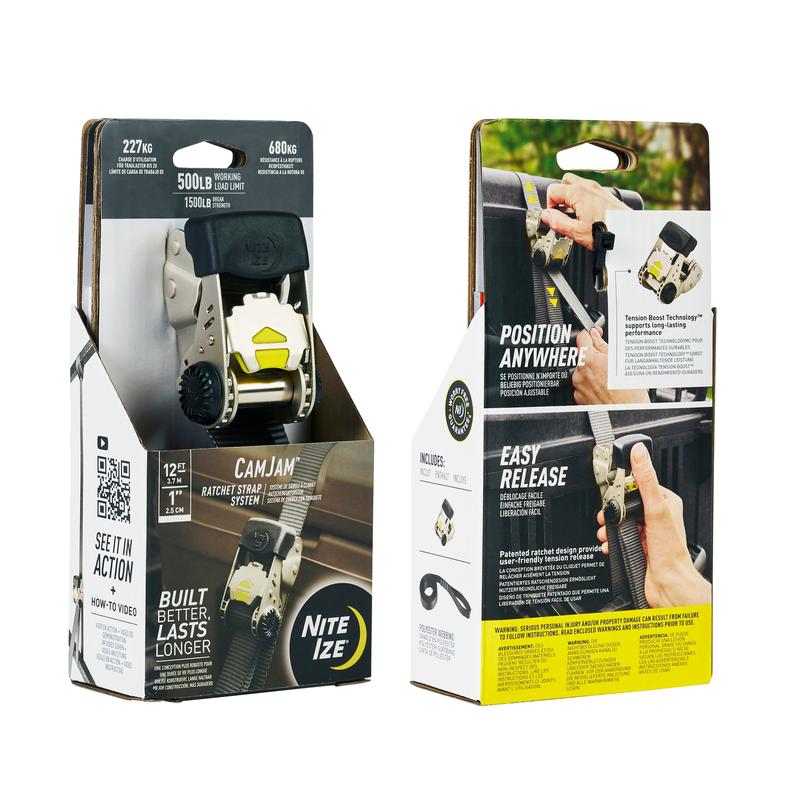 Meet the ratchet strap reinvented. This patented design is the first of its kind, providing customizable ratchet positioning, secure attachment, effortless tensioning of medium loads, and easy, controlled tension release.