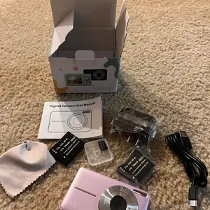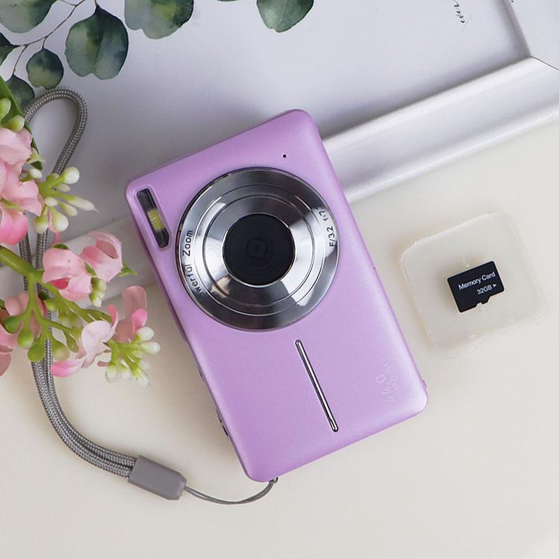 I bought it to start recording my vlogs and I loved it. It's compact, easy to use, and the lavender color is beautiful. It's a good quality purchase, comes with an SD card and a safety wrist strap. Ideal for photos, daily videos, or as a gift.