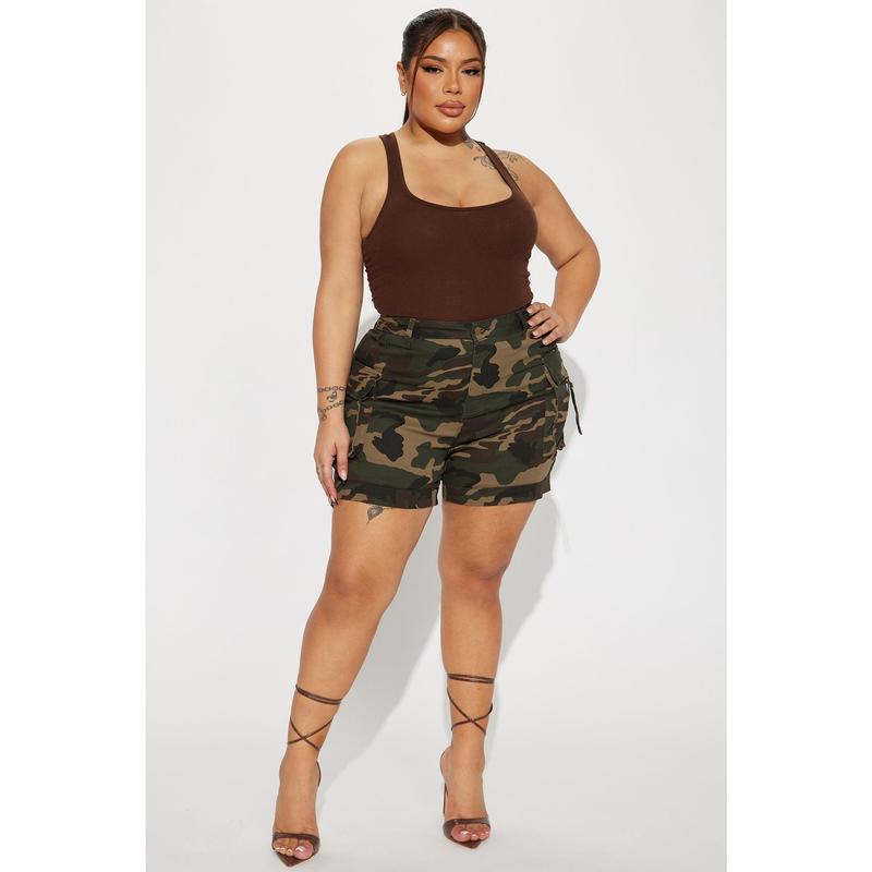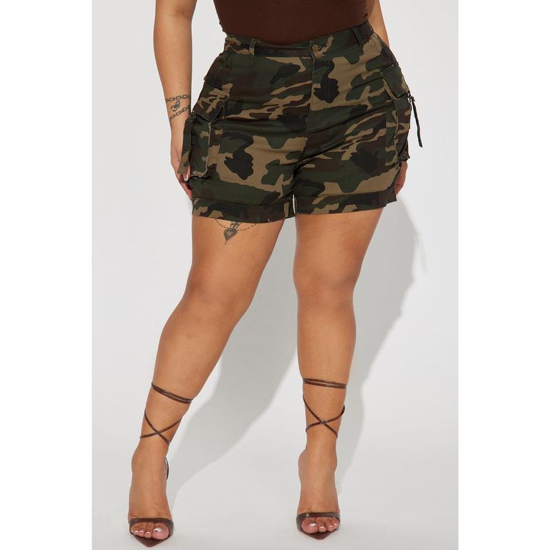 High Status Camo Cargo Short - Olive/ combo 💚✨size 2xl - sold by @Fashion Nova #plussizeshorts #outfit #cargoshorts #camouflage