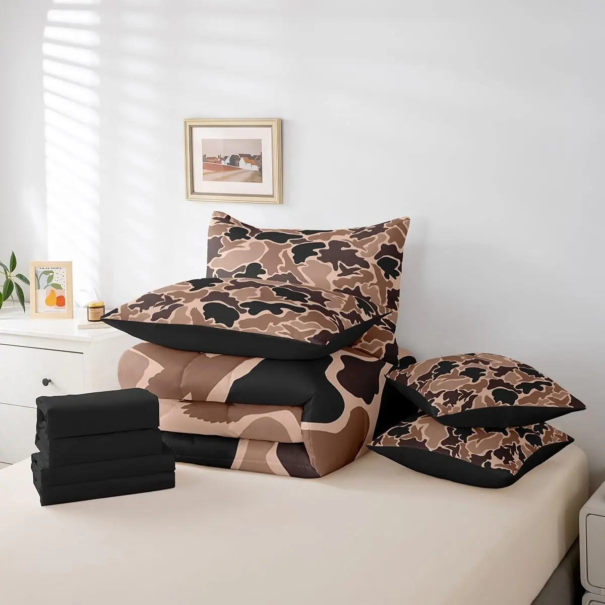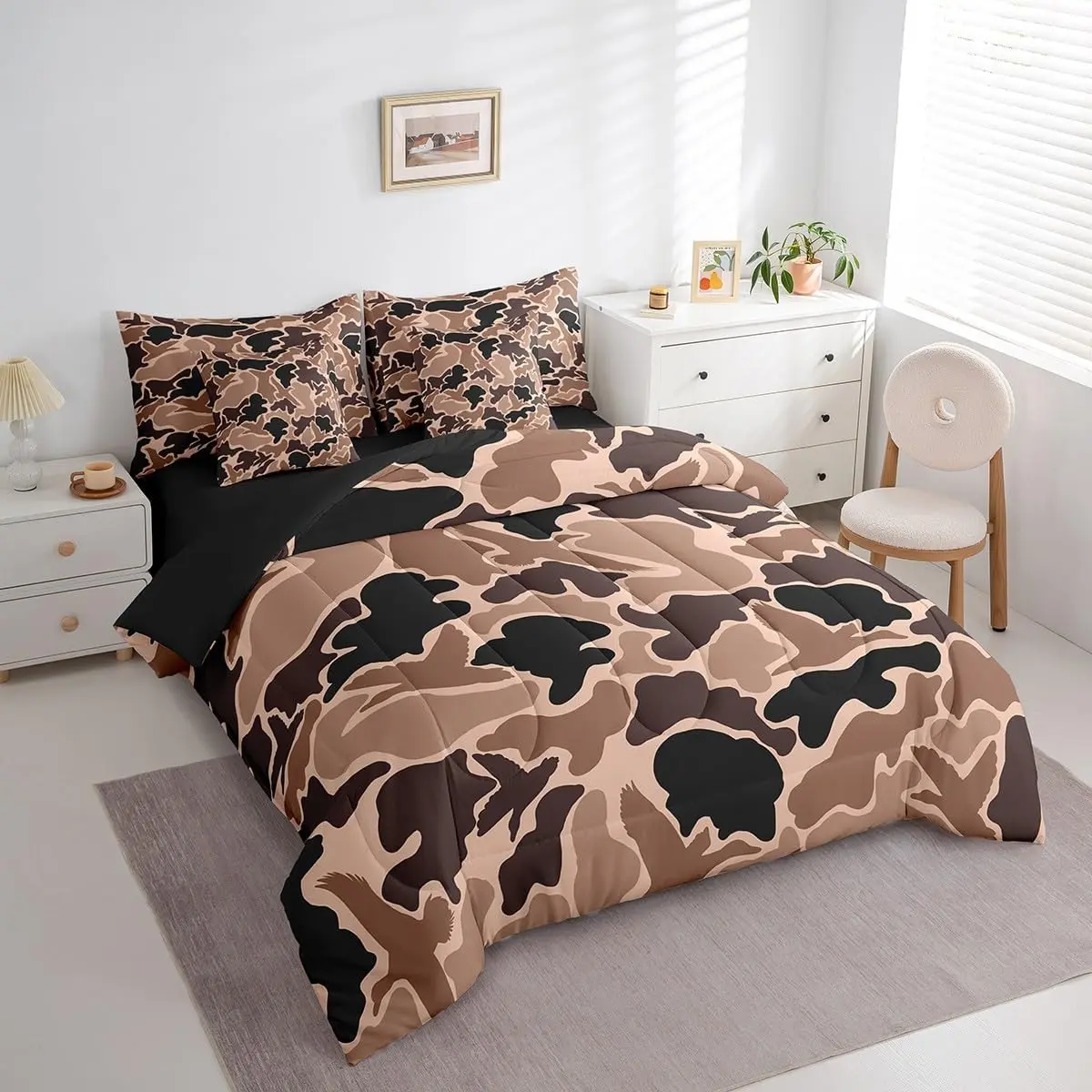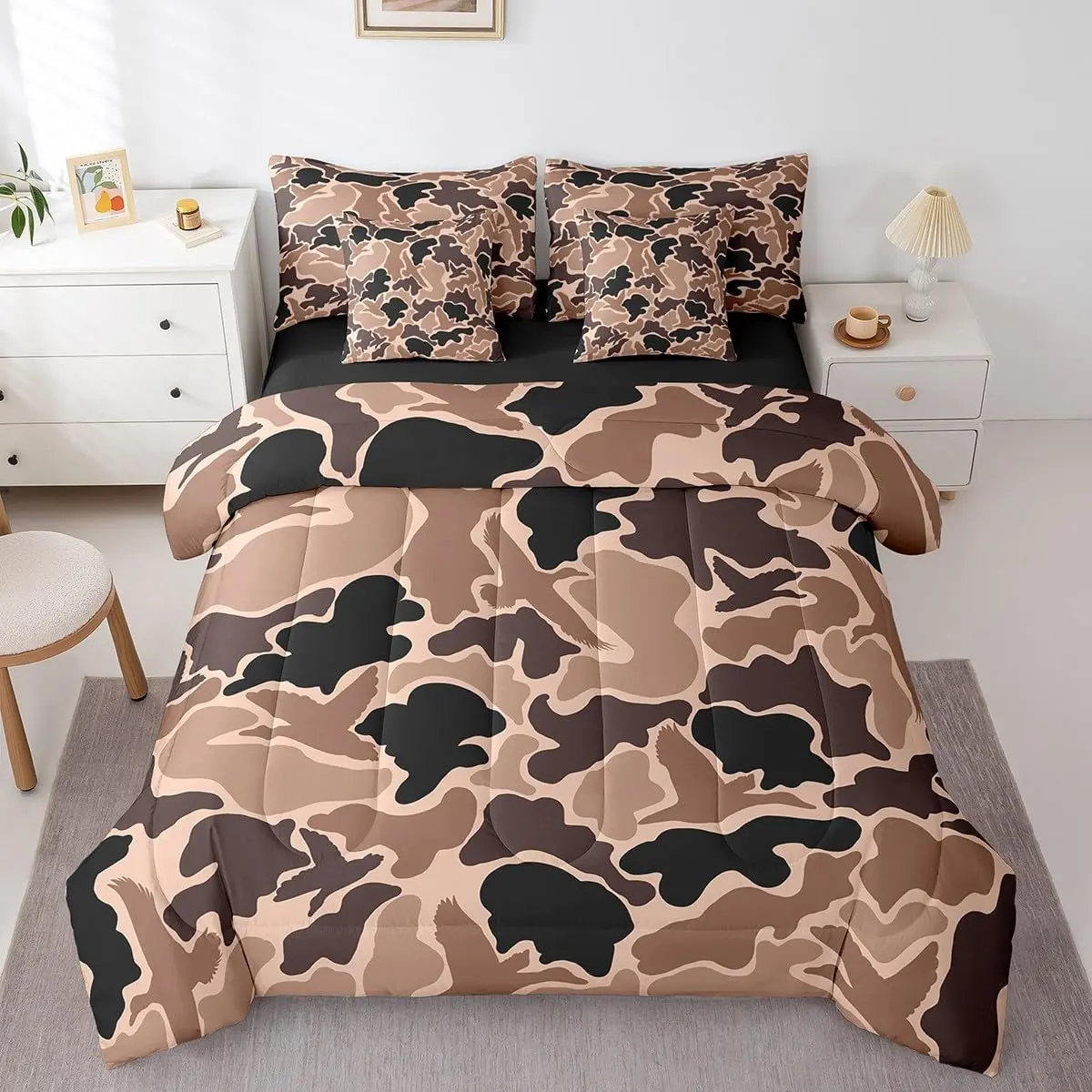 5. Camo Duck Bedding Set,Duck Hunter Comforter Set with Sheets,Farmhouse Brown Bed in A Bag,with Comforter,Sheets,Pillowcases & Cushion Cover
