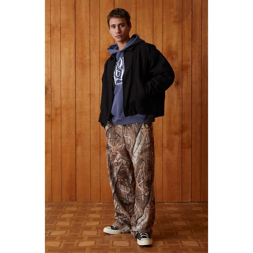 Stay cozy with rugged style in the Camo Fleece Extreme Baggy Sweatpants from Pacsun. Crafted with a camo print and soft fleece lining, a drawstring waistband, side pockets, and oversized wide leg openings, these sweatpants offer a relaxed, baggy fit perfect for days that call for lounging or casual activities.
