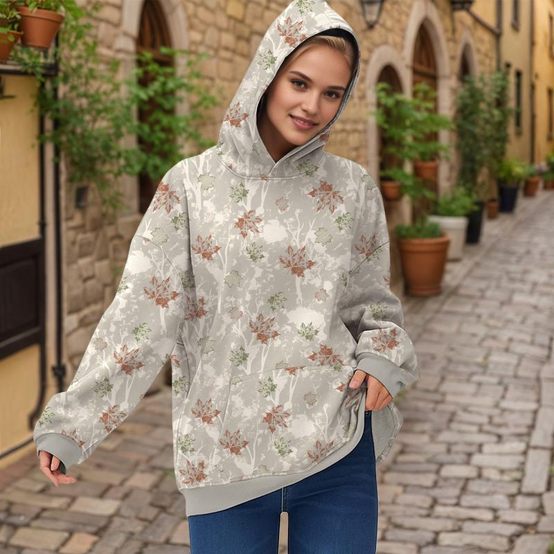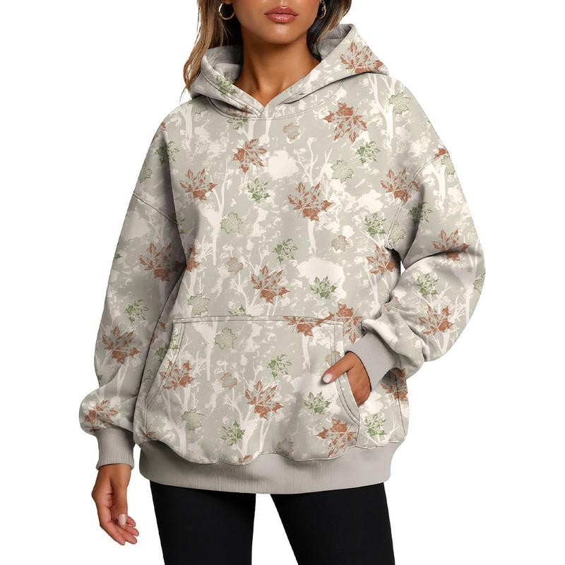 ·Material:Crafted from a soft cotton blend with a cozy fleece lining, this maple leaf camo oversized hoodie is thick, warm, and ultra-comfortable — perfect for fall and winter.