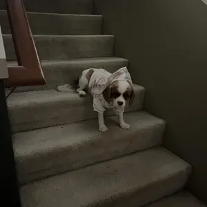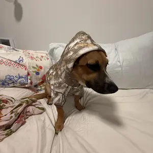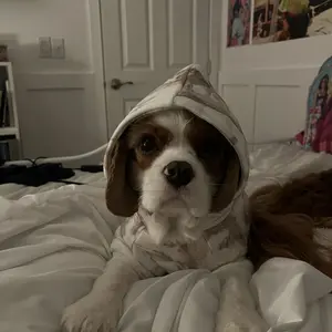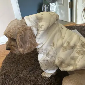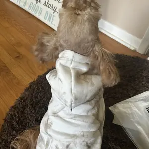 My Cavalier King Charles Spaniel recently got shaved and he has been quite cold so I got him this hoodie in a size medium, but it’s kind of snug on him. He’s absolutely adorable though and it’s very well made and very warm but if I were to get him another one I’d probably get a large.