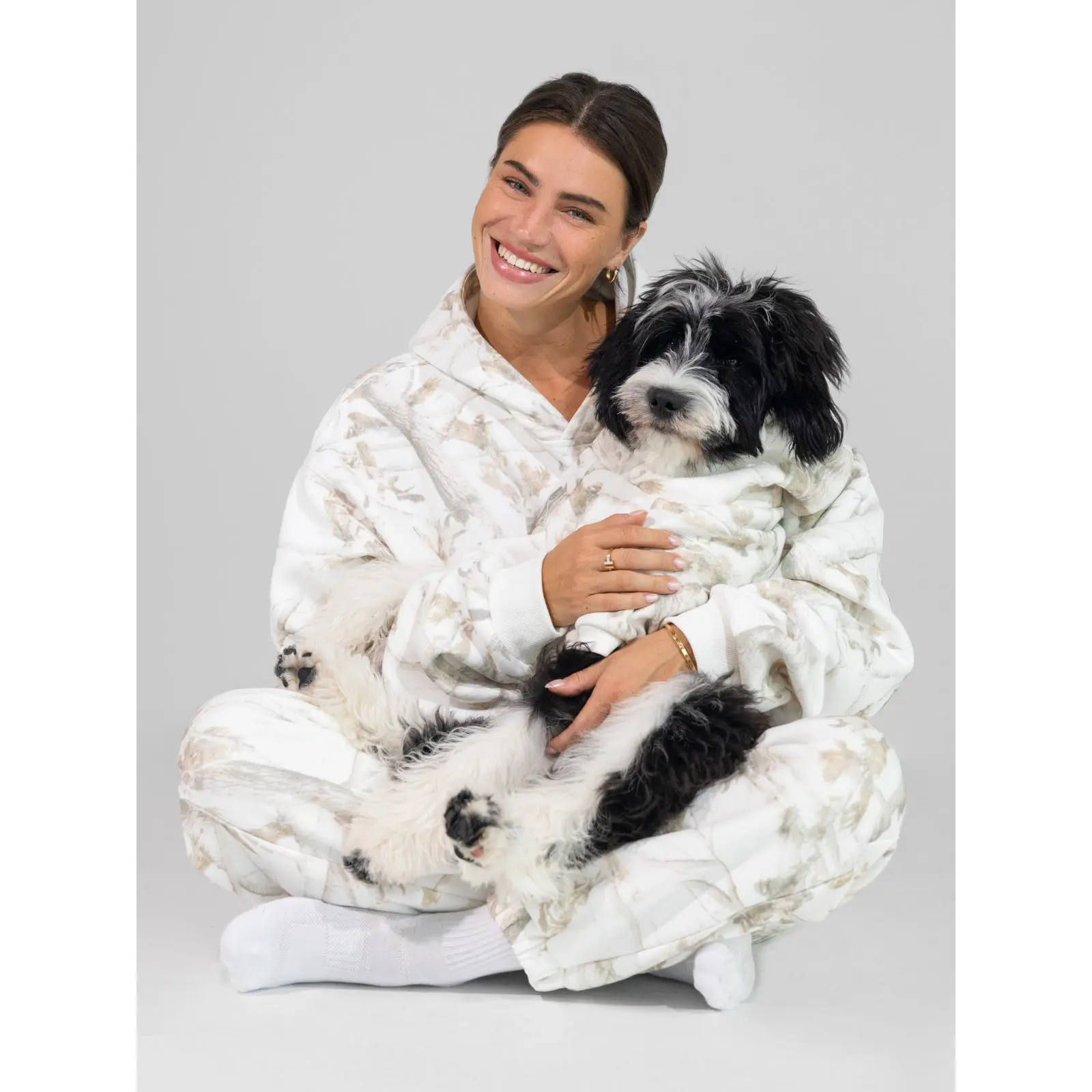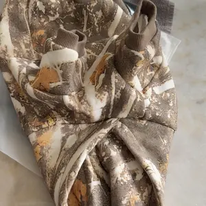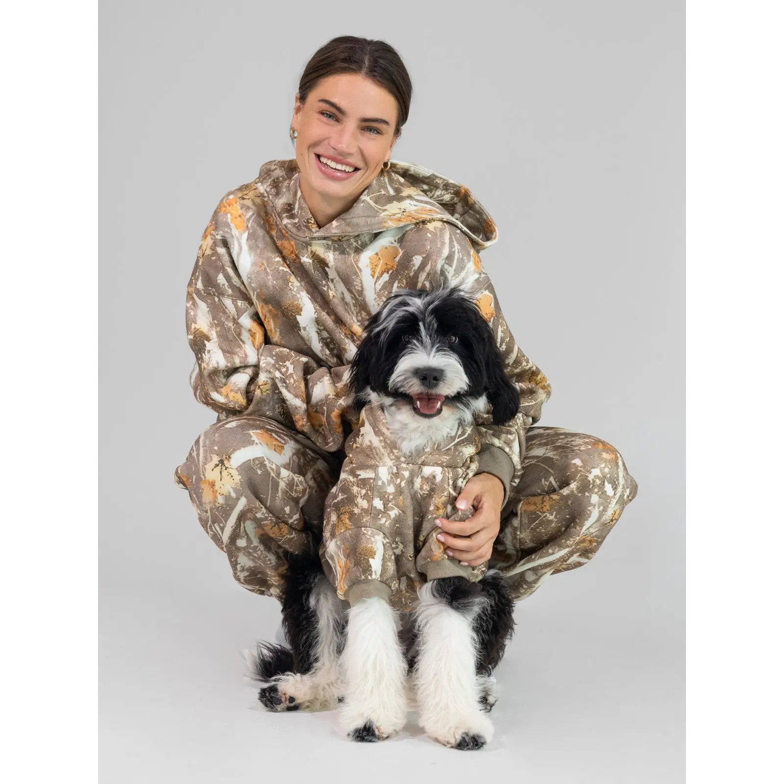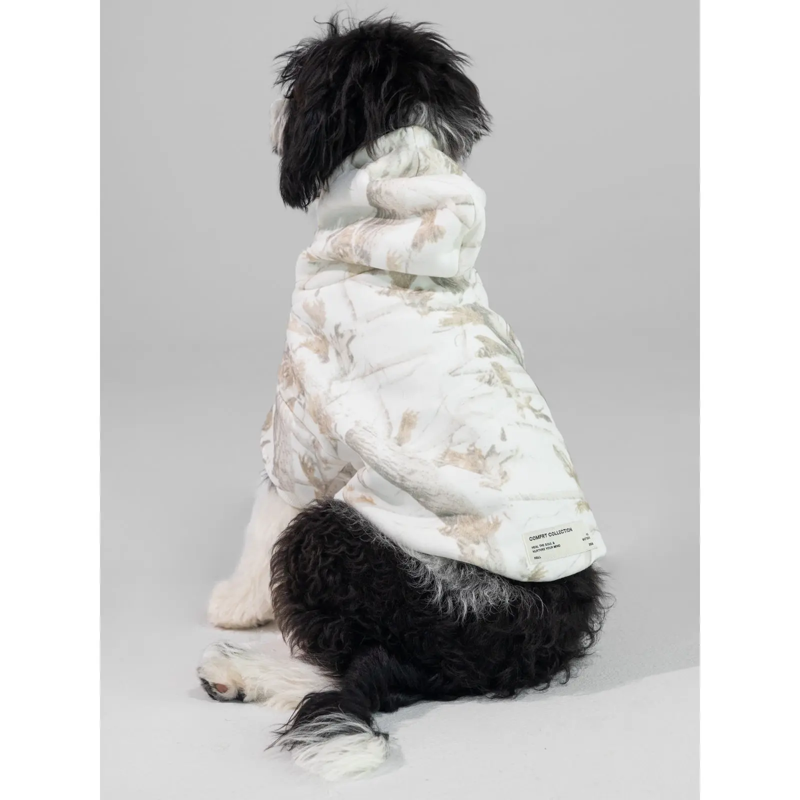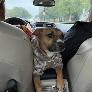 Got me and my baby the matching white oak hoodies. He’s a 12lb Shih Tzu wearing a small (with a harness underneath) Looking at reviews the hoodies seemed to run large for small dogs. Chart says he should be a Med. But I didn’t want it too big to where he might pee on it, small fits him perfect!