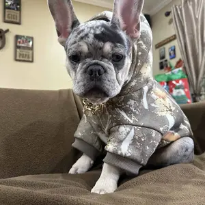 My frenchie hank loves his comfrt hoodie