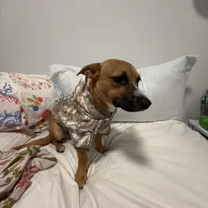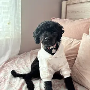 My puppy is technically a large based on size chart but the medium is more than roomy on him and fits just as nicely as the large I got him. So check their website for the actual garment measurements vs just the size chart! Super high quality!! Please excuse his disassociation in the pics 😂