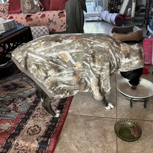 I got this amazing camouflage pattern by Comfort for my large Shepherd bully mix. She was not sure about it when I put it on her, but I know she will get used to it now I gets very nervous during fireworks thunderstorms, etc. I bought her a size 6 she weighs around 90 pounds. It’s a little tight getting it over her head. She does not have an extra large head, however once on it fits somewhat loosely, but comfortable got it for an amazing price for the quality the usual quality by Comfort get one while the sale is on.