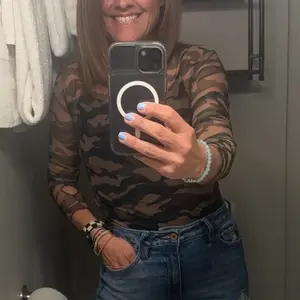 Cute sheer camo shirt! I wore it with a black cami under it and denim. I also wore it with black kick flairs and a sweater over it. I always get tons of compliments! Would purchase again if there are different patterns! Typically a small but I sized up to a medium!