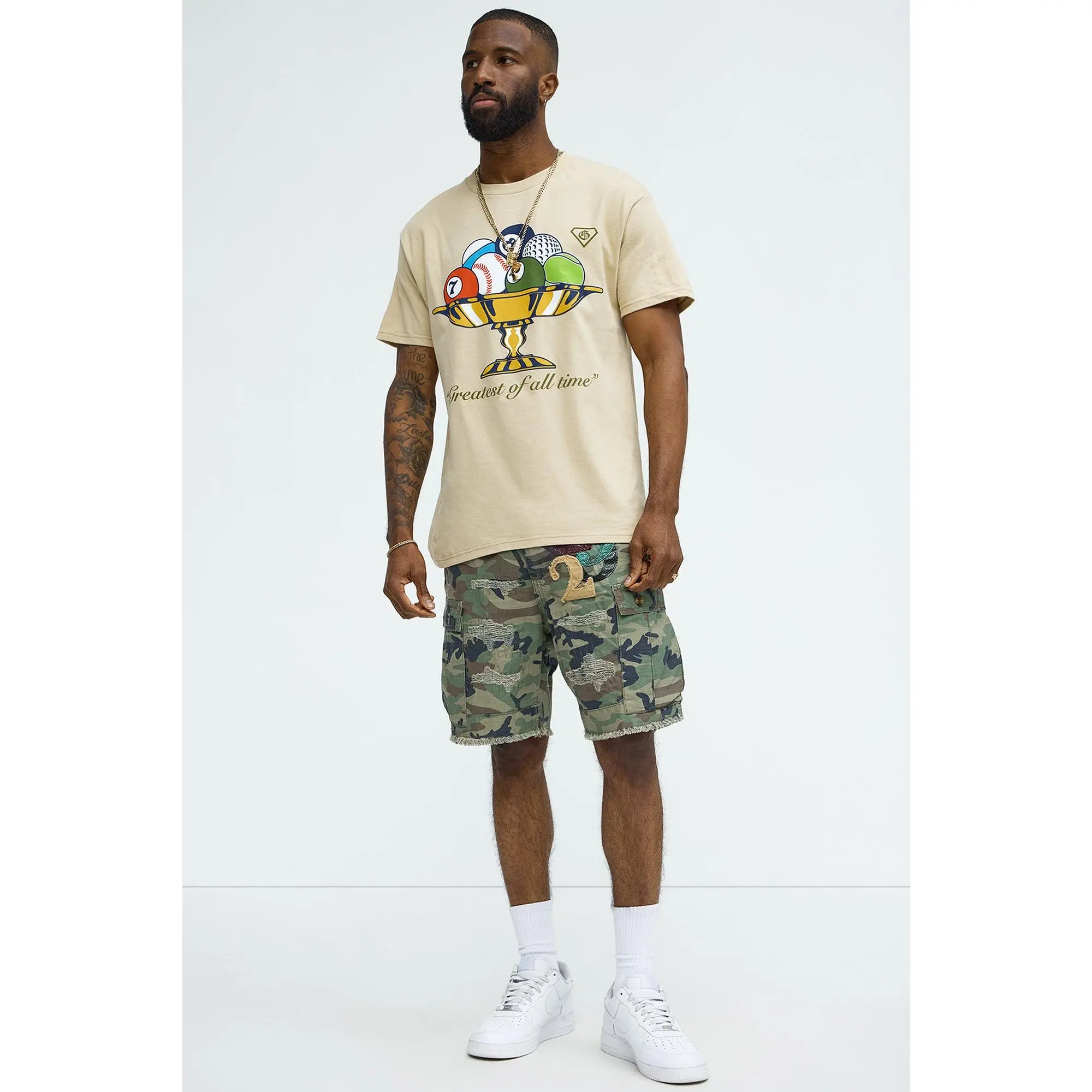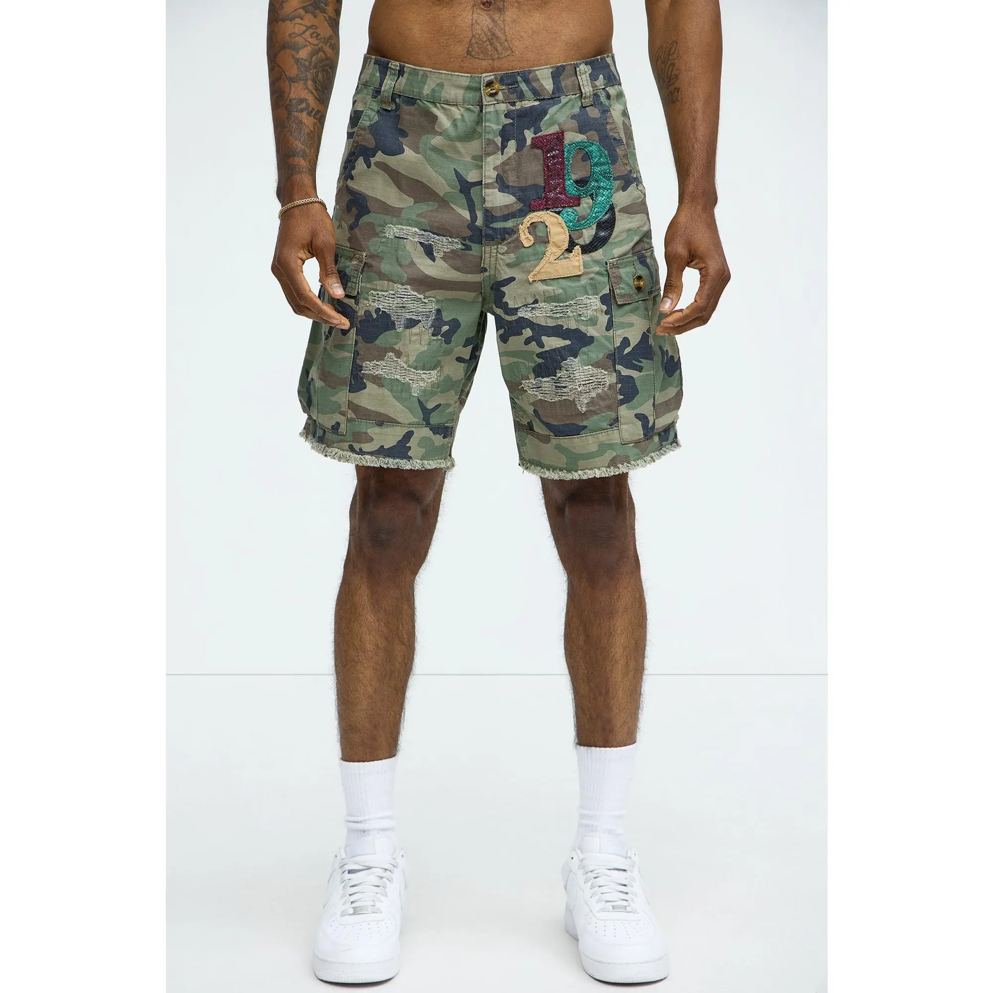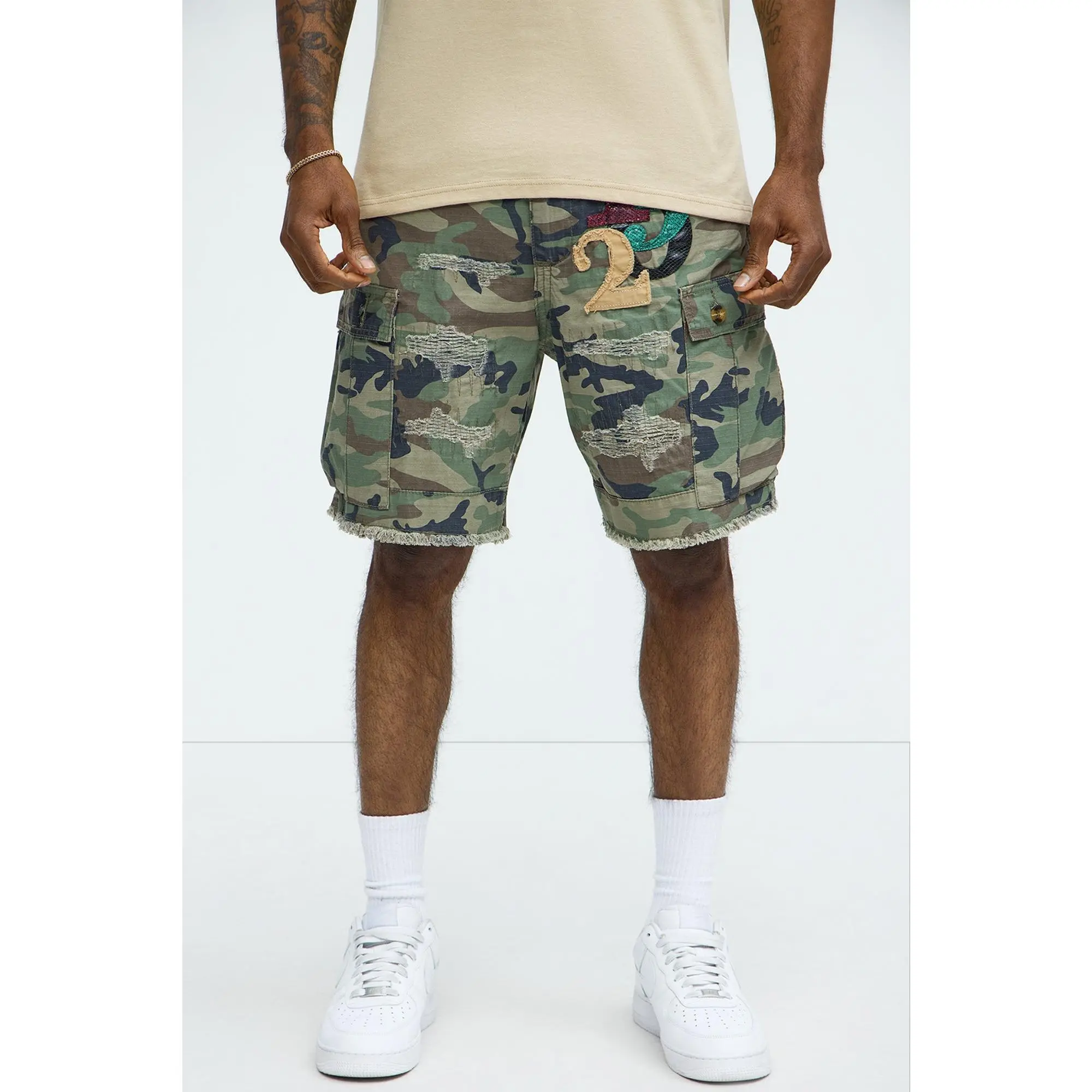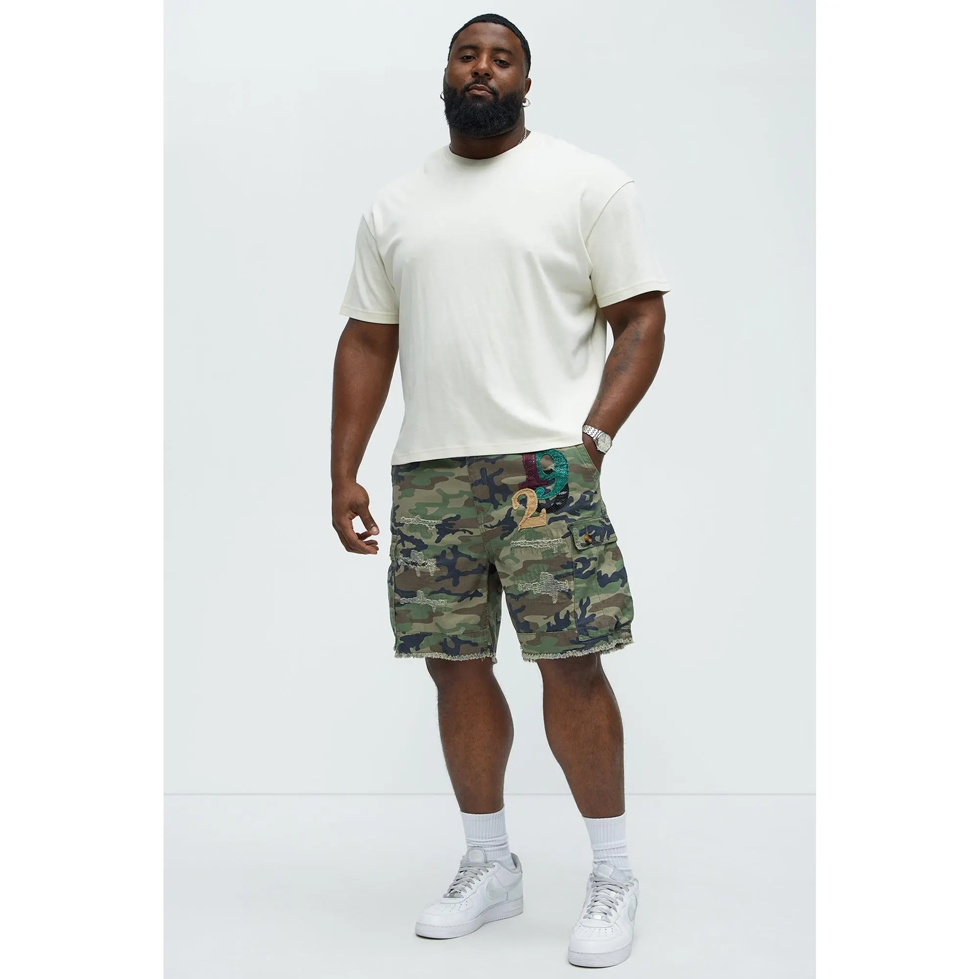 OOTD we pulled out these cargo shorts, matched it up with this white T-shirt and sand color hoodie #Shorts #CargoShorts #Camouflage #Menswear
