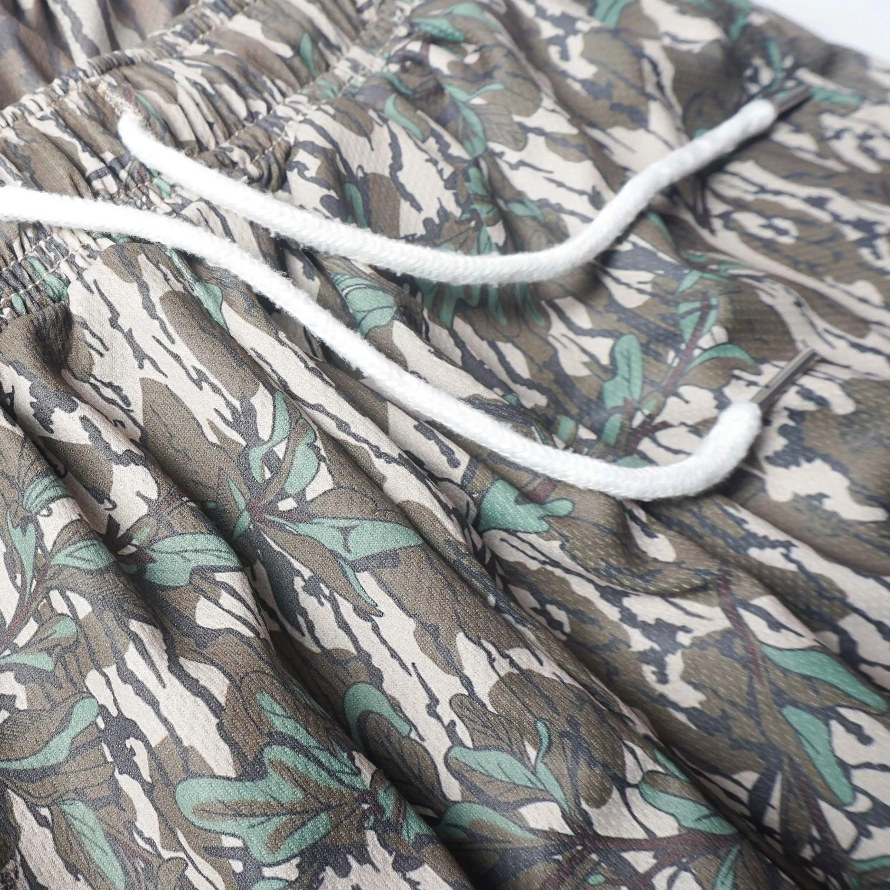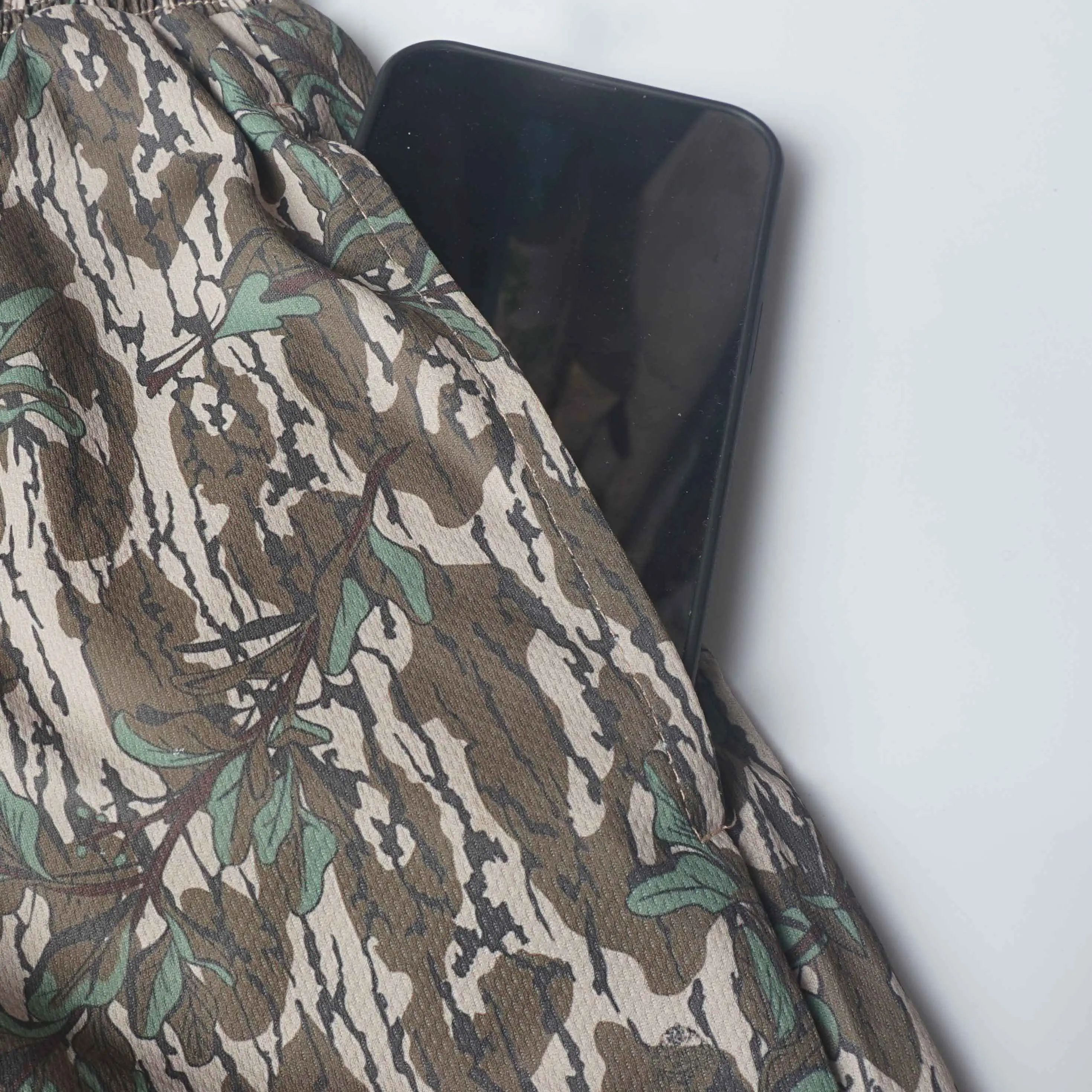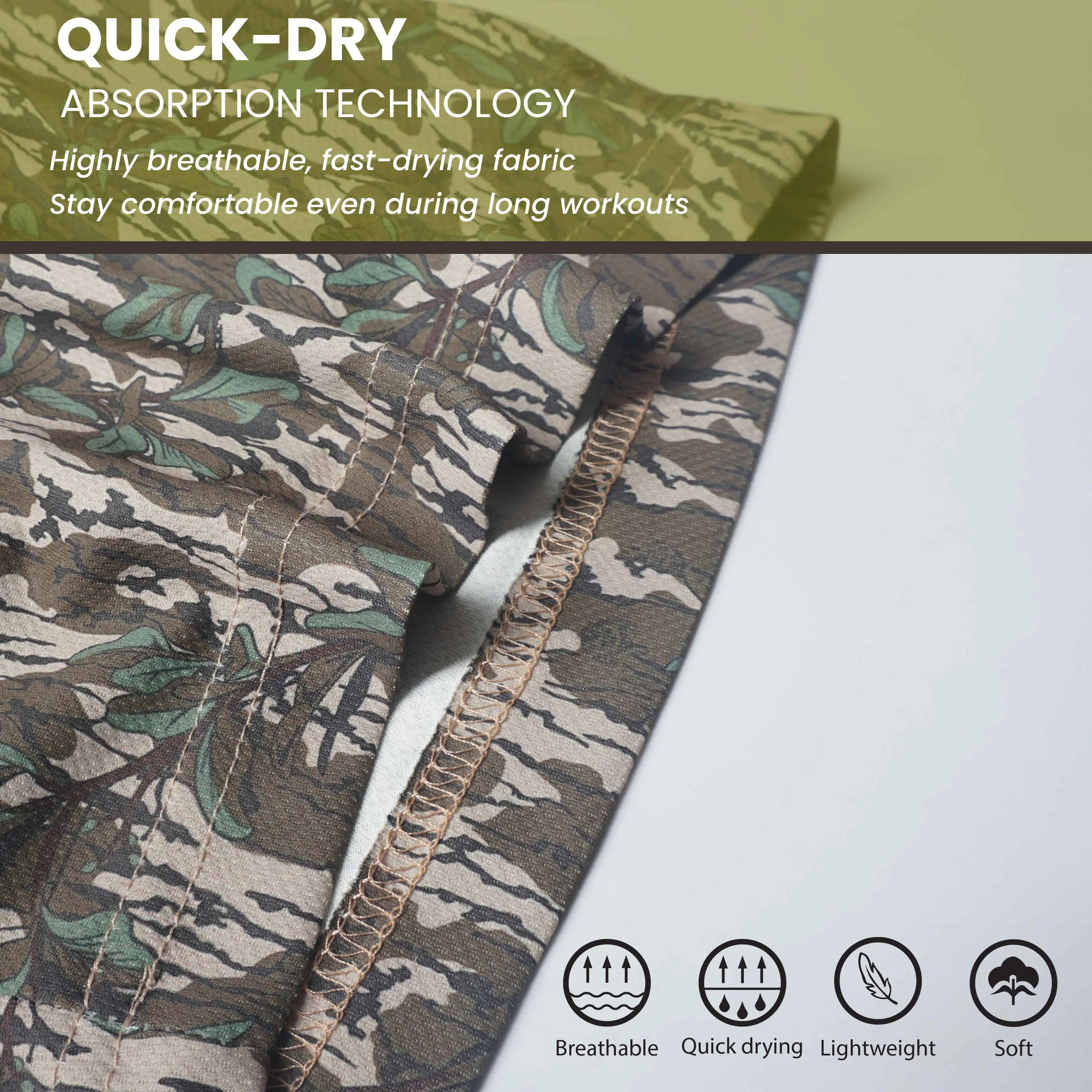 Made with camo mesh material for breathability. 🌿 Suitable for both men and women. 🏋️♂️ The 5-inch inseam ensures a comfortable fit for all users.