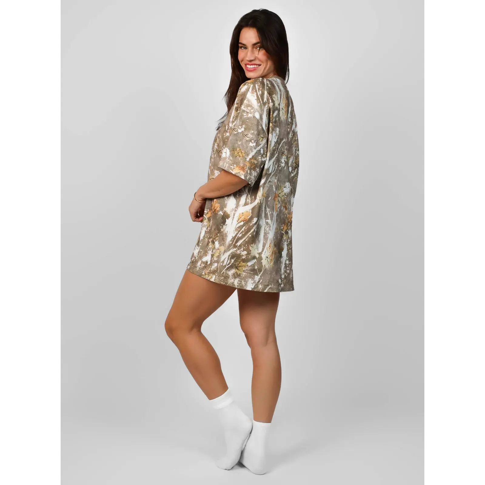 Had to grab me one of these cuties on sale and I’m so glad I did! Much better quality in a camo tee than I’d expected. loving this trend and this was a great purchase. Quality is so soft stretchy and comfortable because of the oversized fit. I am 5’5 100lbs slim and this fit as expected. 👌👌