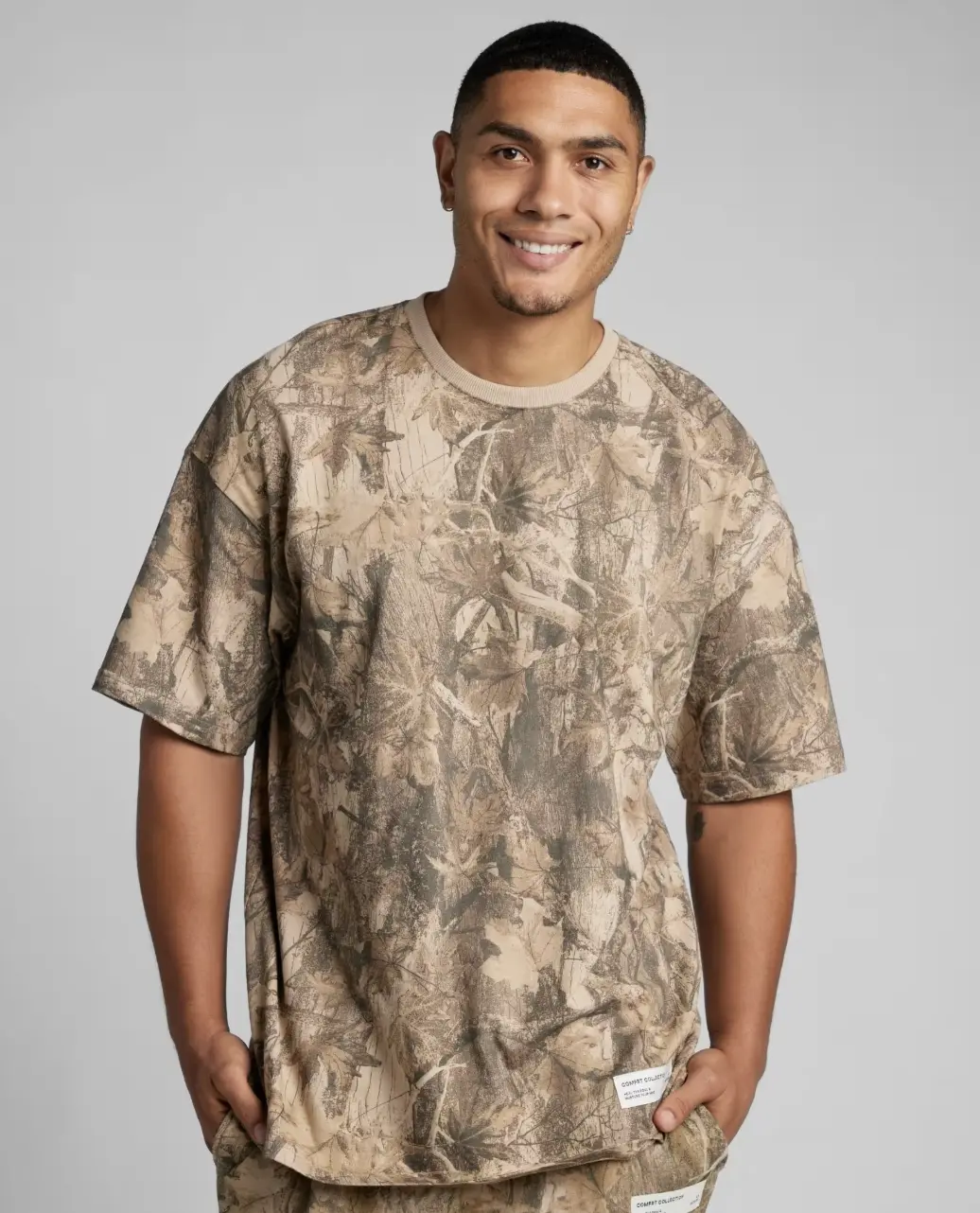Love this camo design. This is probably my fifth comfort tee and I just love to chill in these tee shirts. I like to order a little larger so I can sleep in