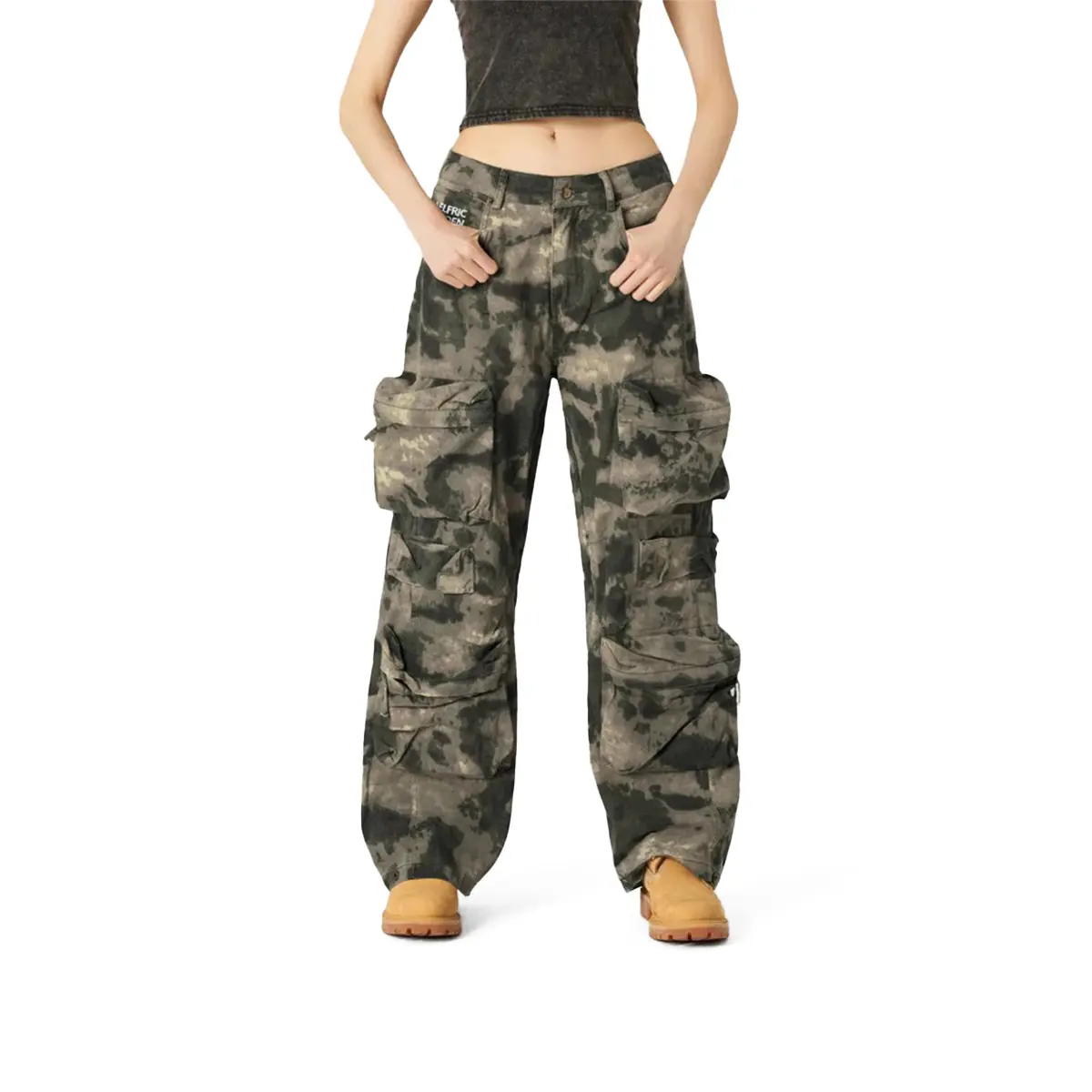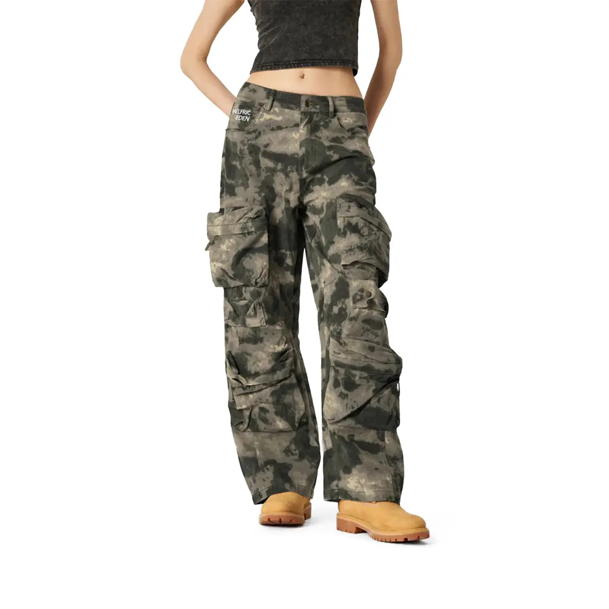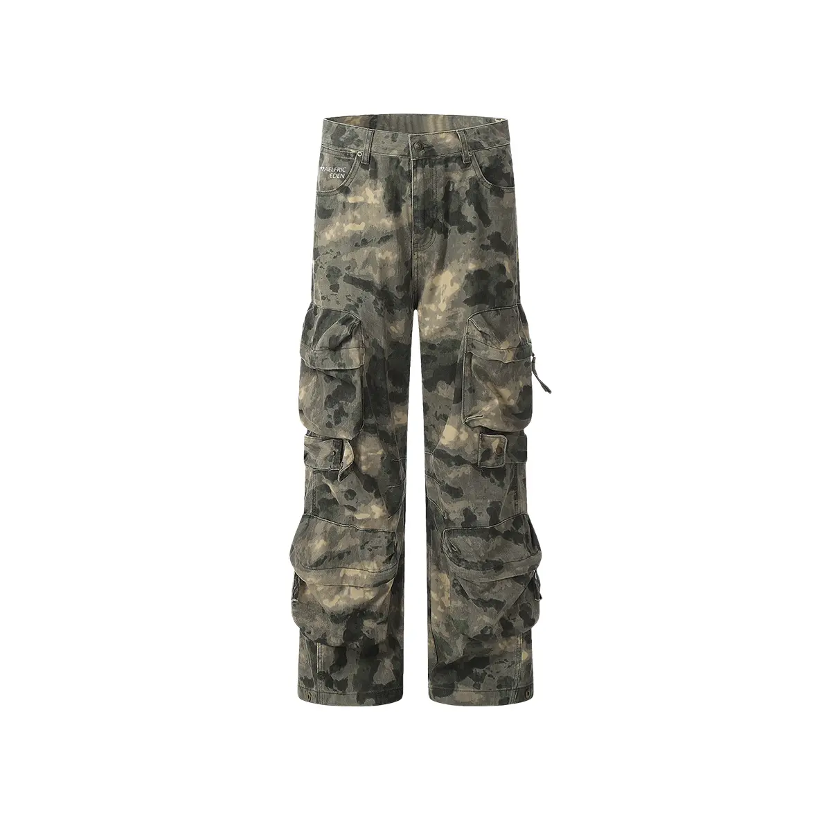 Aelfric Eden Camouflage Baggy Pants for  Mid-low rise casual cargo pants, branch camouflage work and casual pants with pockets Loose Bottom Trouser