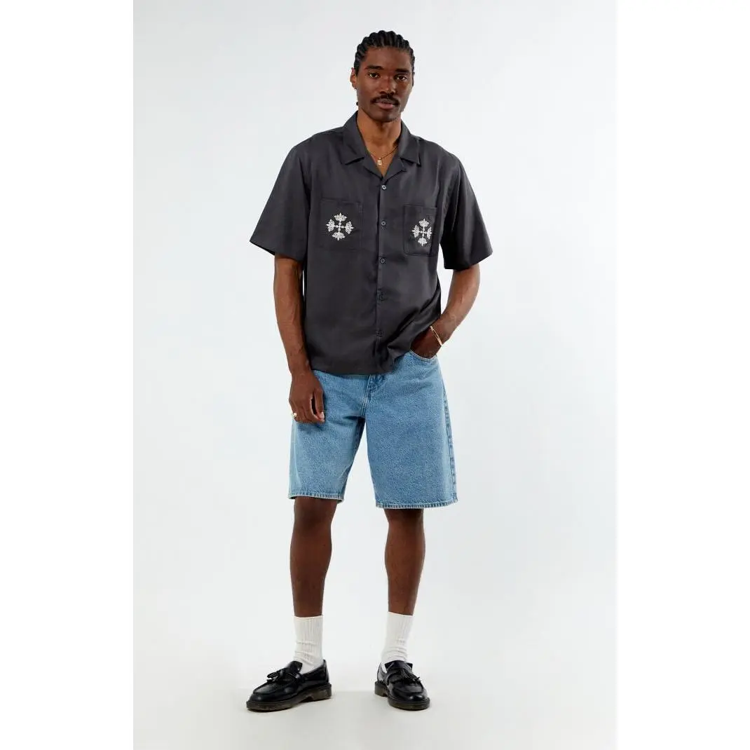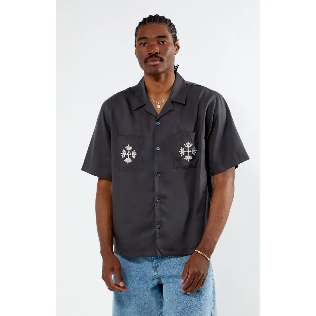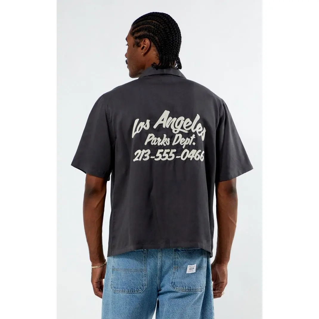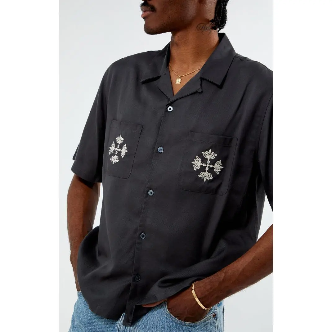 The PacSun Parks Oversized Camp Shirt offers laid-back style with a modern edge. Featuring a flat camp collar, short sleeves, button-down front closure, chest patch pockets, and chain stitch embroidery on the front and back, this shirt’s oversized boxy fit delivers effortless comfort.