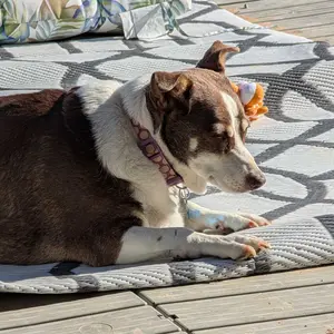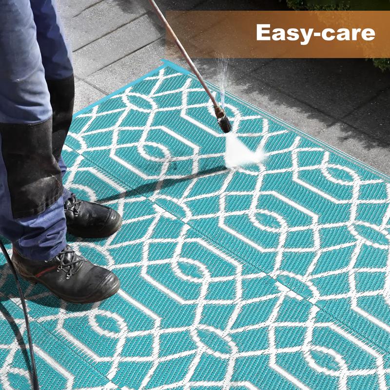 We love this rug its perfect for our outdoor patio. With 3 large dogs and being able to power wash it frequently its the best addition for the vibe! Easy to move, easy to clean, and affordable.