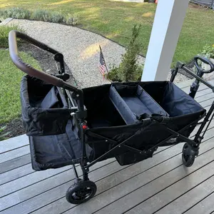 I love this wagon! Sturdy enough to carry my 11 month old twins plus their things. The only thing is i wish it had more cushioning (hence the blankets). But other than that, it drives smoothly and is compact enough when folded that it fits in the trunk of my honda civic.
