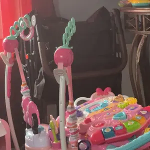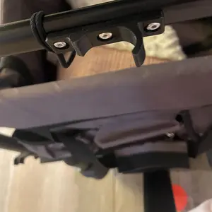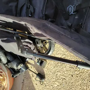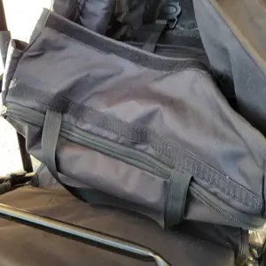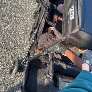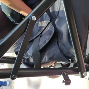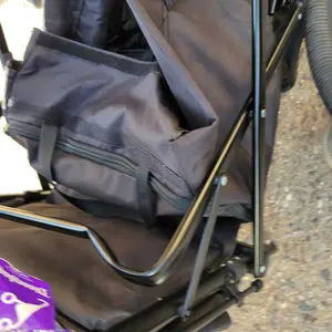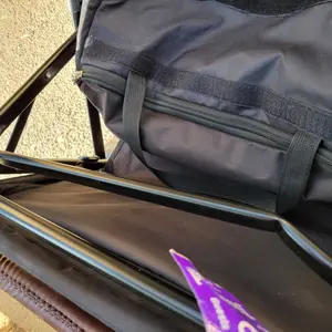 Okay so I love everything about this you can take the whole thing off and clean it rides smooth lots of space and pockets having a feet spot gives my kids more room the 9nly thing is it's all velcro so it comes undone easy and when the sit in it sometimes comes undone and I have to fix it 20 times