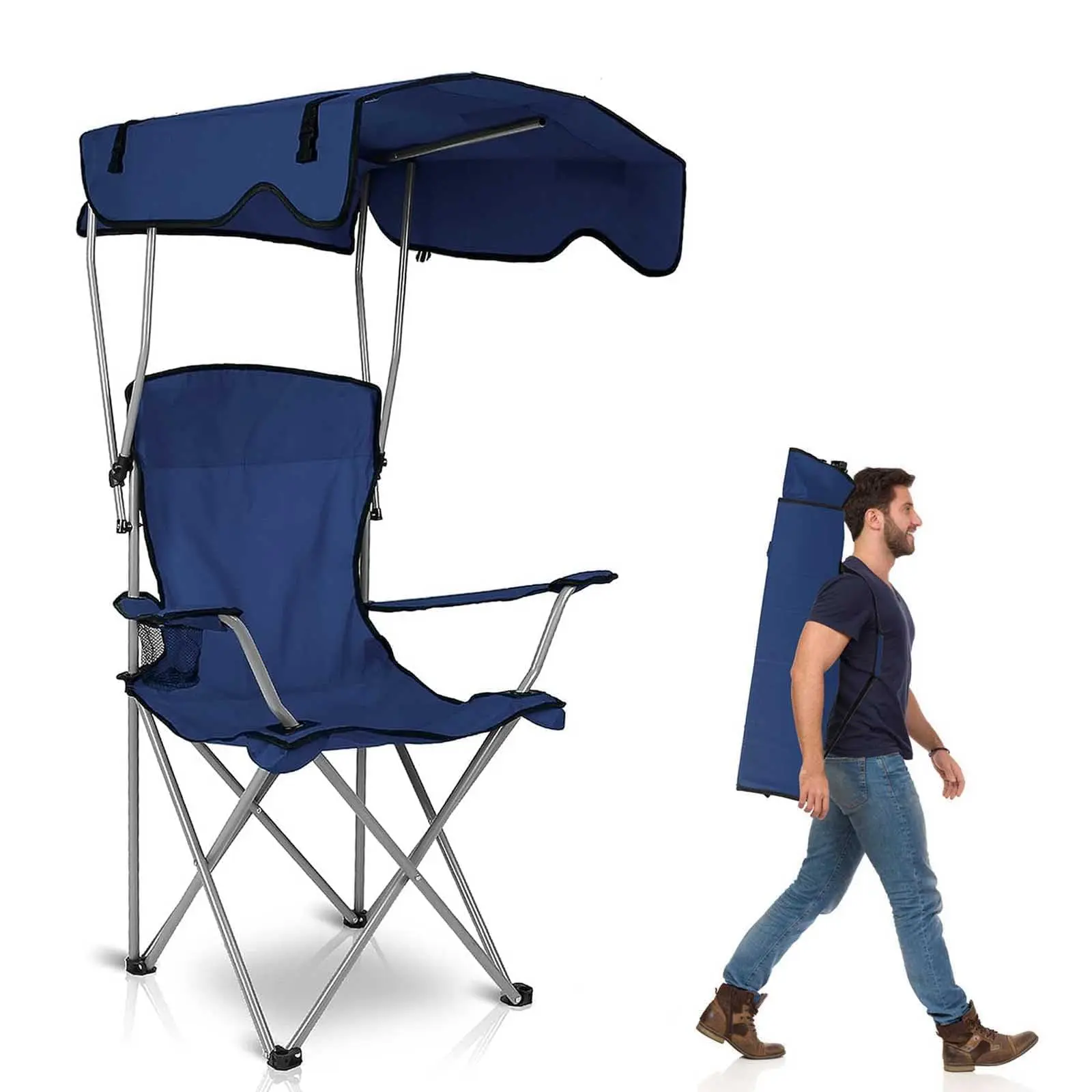 ·[STURDY STRUCTURE & ADJUSTABLE, DETACHABLE SUNSHADE CANOPY] - folding chair with canopy The supporting frame is constructed of high-strength powder-coated steel pipes, which are not easy to rust and are sturdy enough, ensuring long-term outdoor use. This beach chair with an umbrella supports adults up to 350 lbs and provides long-lasting use, is an excellent choice for canopy camping.