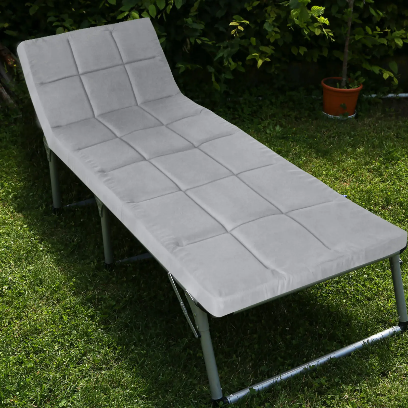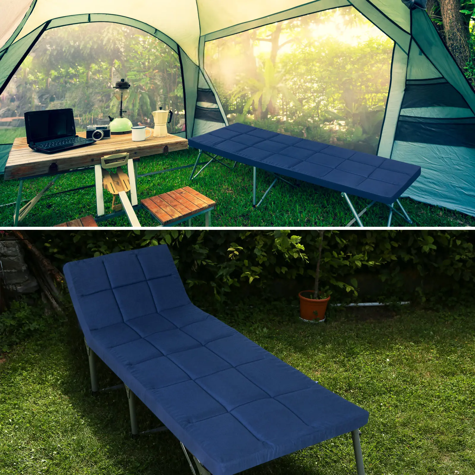 ·Perfect Size & Moderate Filling: The camping cot pad's open size is 75" x 30" x 2", wider and much thicker than usual, more comfortable to be used on the camping cots or lounge chaise chairs. Besides, the pad is filled with premium foam which offers you support during rest, along with the right softness and comfort!