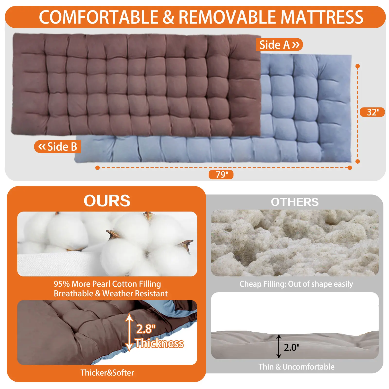 If I could change something about this product, it would be the fact that the cushion on the top is not as lush and luxurious as it seems in the pictures, also it doesn’t fit in the bag that they give you to hold the cot so you have to have a whole Nother bag just to carry the little mattress topper