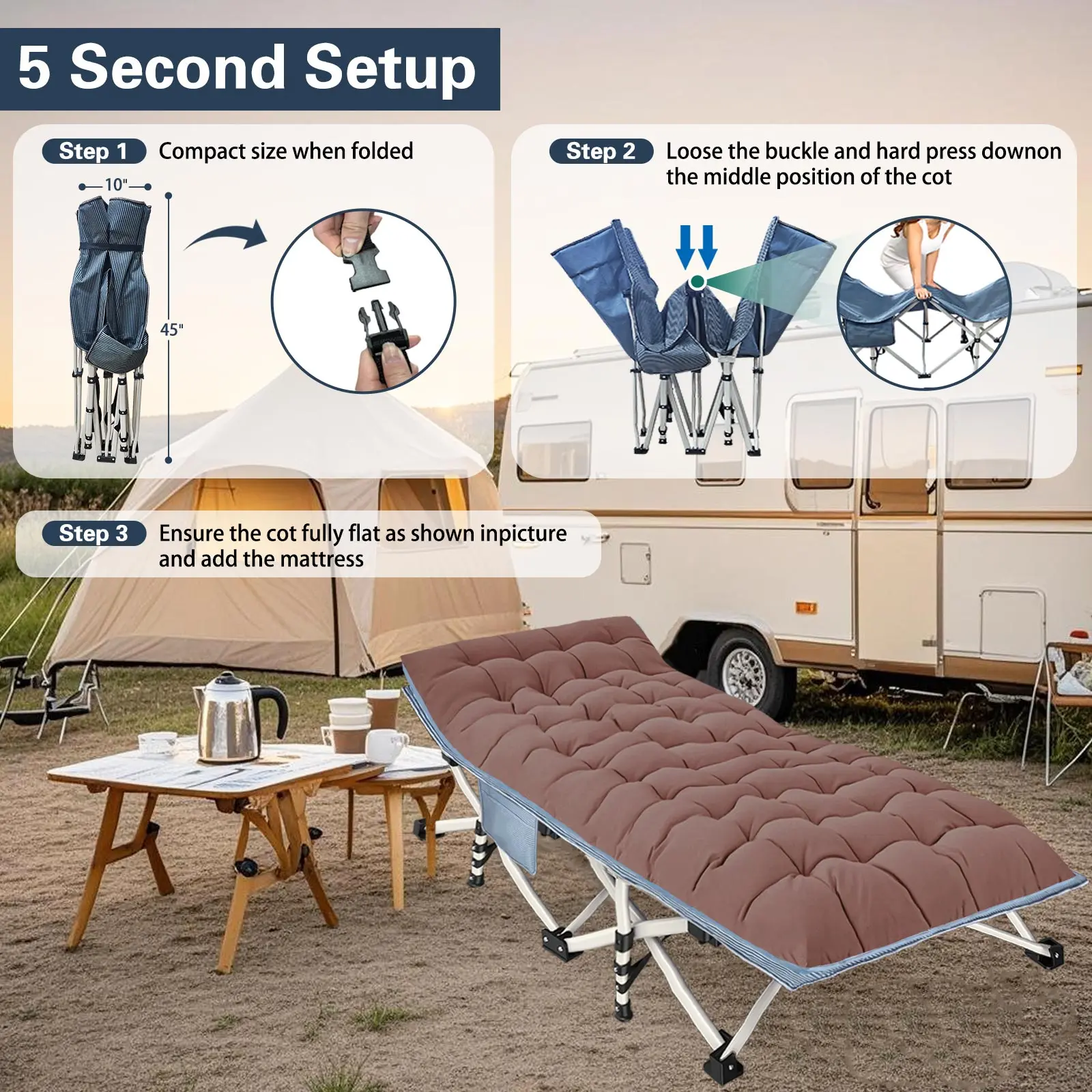 First impression is that the cots appear well constructed, strong, sturdy and comfortable. Easily holds my husband that is 6’2” 250#. We have a 2 day camping trip planned, time will tell…so far so good!
