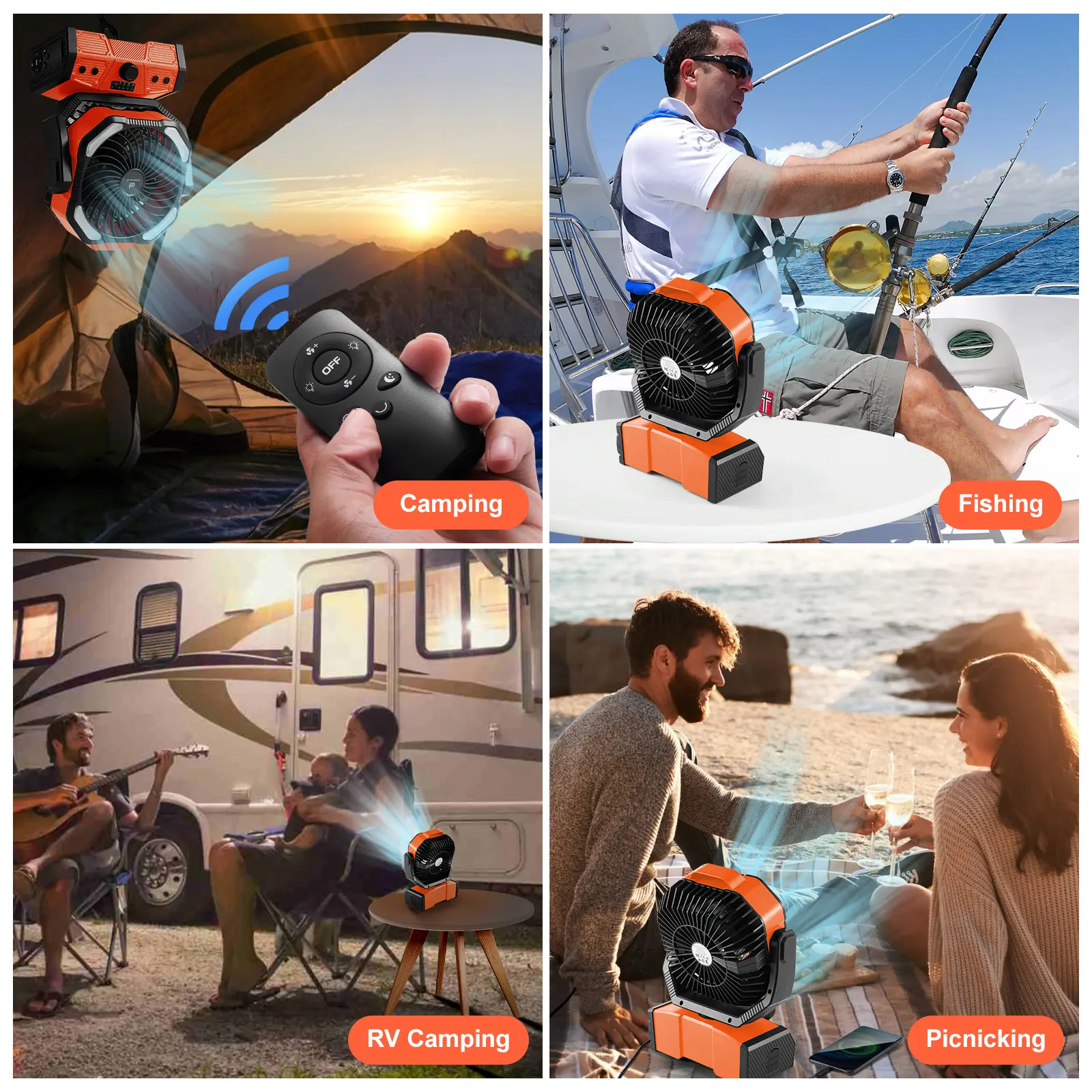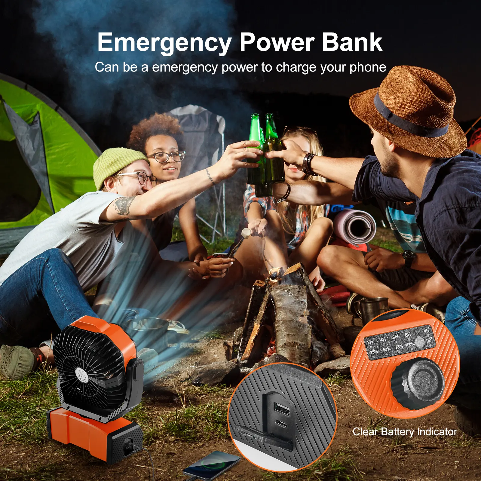 Equipped with a 40000mAh rechargeable battery, this fan supports working while charging. Fully charged in 16 hours, it also supports reverse charging for phones, GPS, and other devices. The battery-powered fan ensures you're never without power.