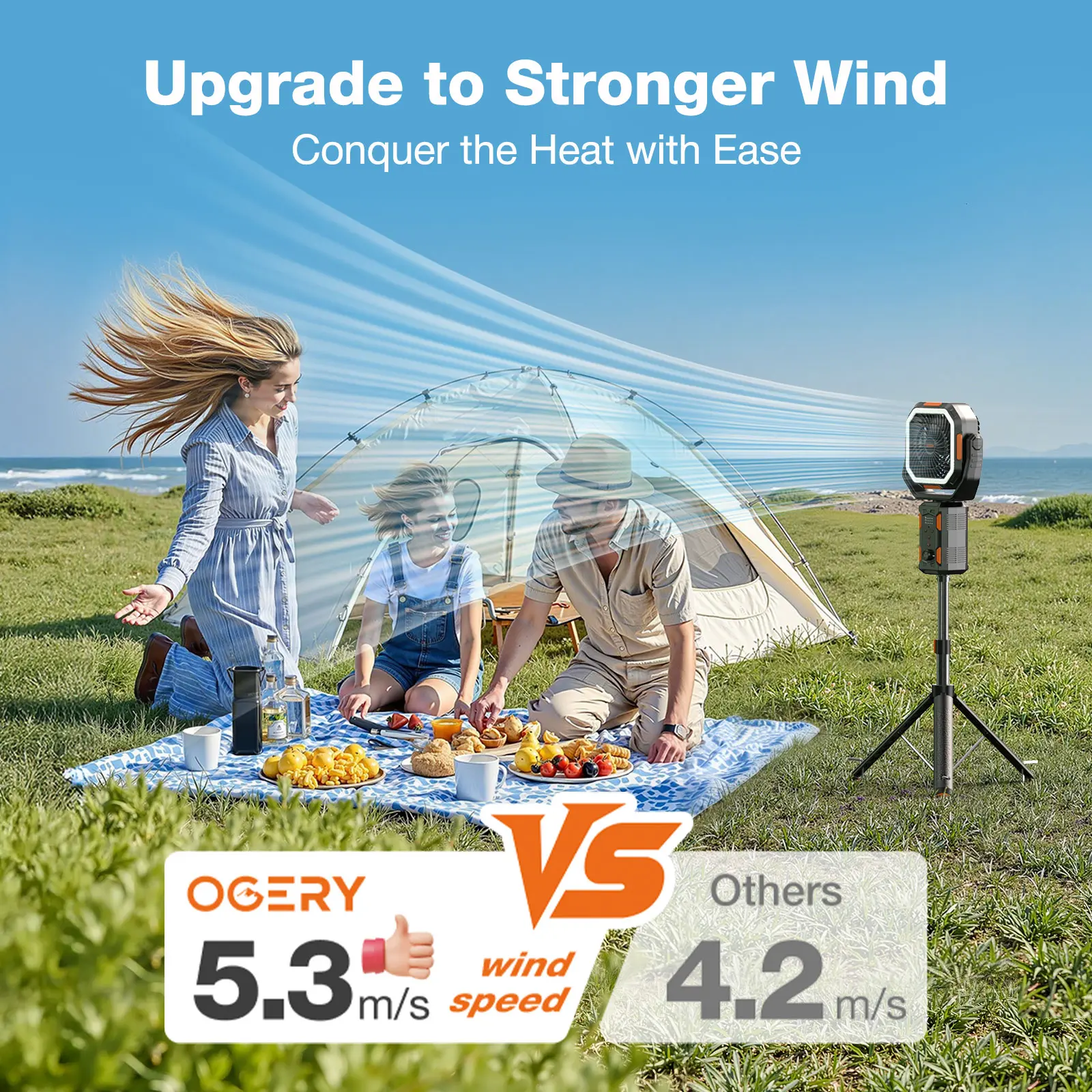 ·Upgraded Turbo Boost – 5.3m/s vs 4.7m/s(standard camping fans)