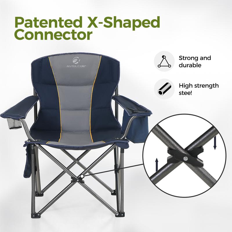 ·【Large Size】 Oversized Camping Folding Chair Size is 25.20" L x 36.61" W x 39.37"H, Weight is 13.2lbs, Large seat area with 600x 300D padded oxford fabric and padded armrest ensure comfort of this chair