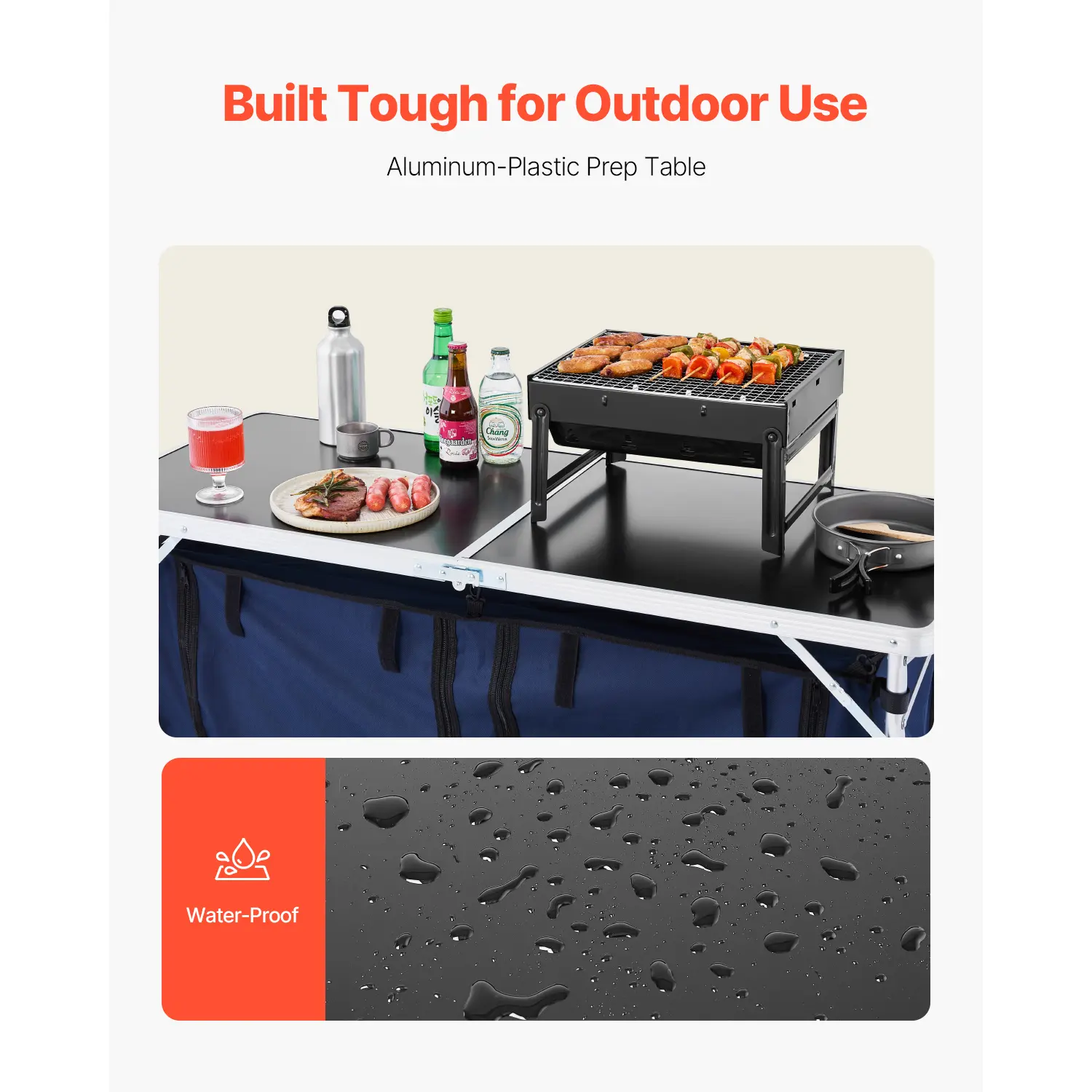 • Built for Outdoor Use: Made with aluminum-alloy tubes and a sturdy aluminum-plastic countertop, this camping kitchen station is built for long-lasting durability