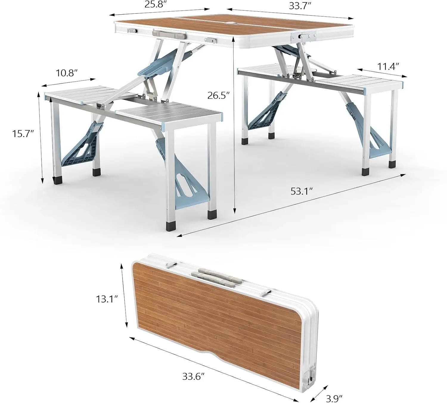 ·Portable : The set is just 34*4*13 inch as suitcase with soft handles when foldable. It is easy to take it to anywhere.When opened, the size is 34*53*26 inch embracing eough space to enjoy your foods.