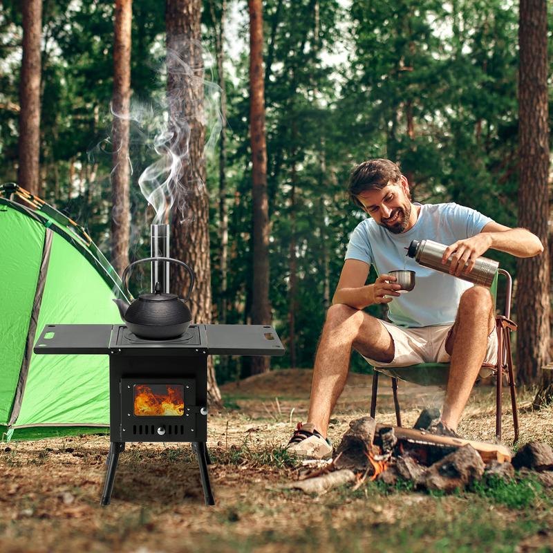 Portable Wood Stove.The folding racks on both sides increase the functionality of easy portability, 17.6lbs. The side frame can be used as a portable. The foldable legs can be folded flat under the stove. The chimney tube can be easily stored in the furnace for easy transportation and storage. The hook that comes with the wood stove makes it easy to clean the ashes at the bottom. Provide more convenience for your camping/hunting trip.