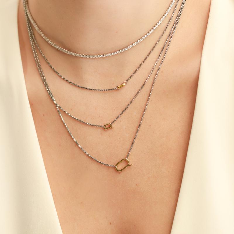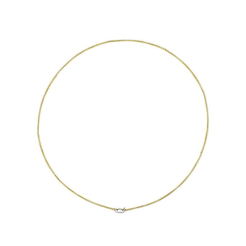 The "Mini Can Opener Slim Chain" is a dainty extra thin stainless steel chain with a 925 sterling silver 18k gold plated clasp. Perfect for every day, its water resistant so no need to take it off.