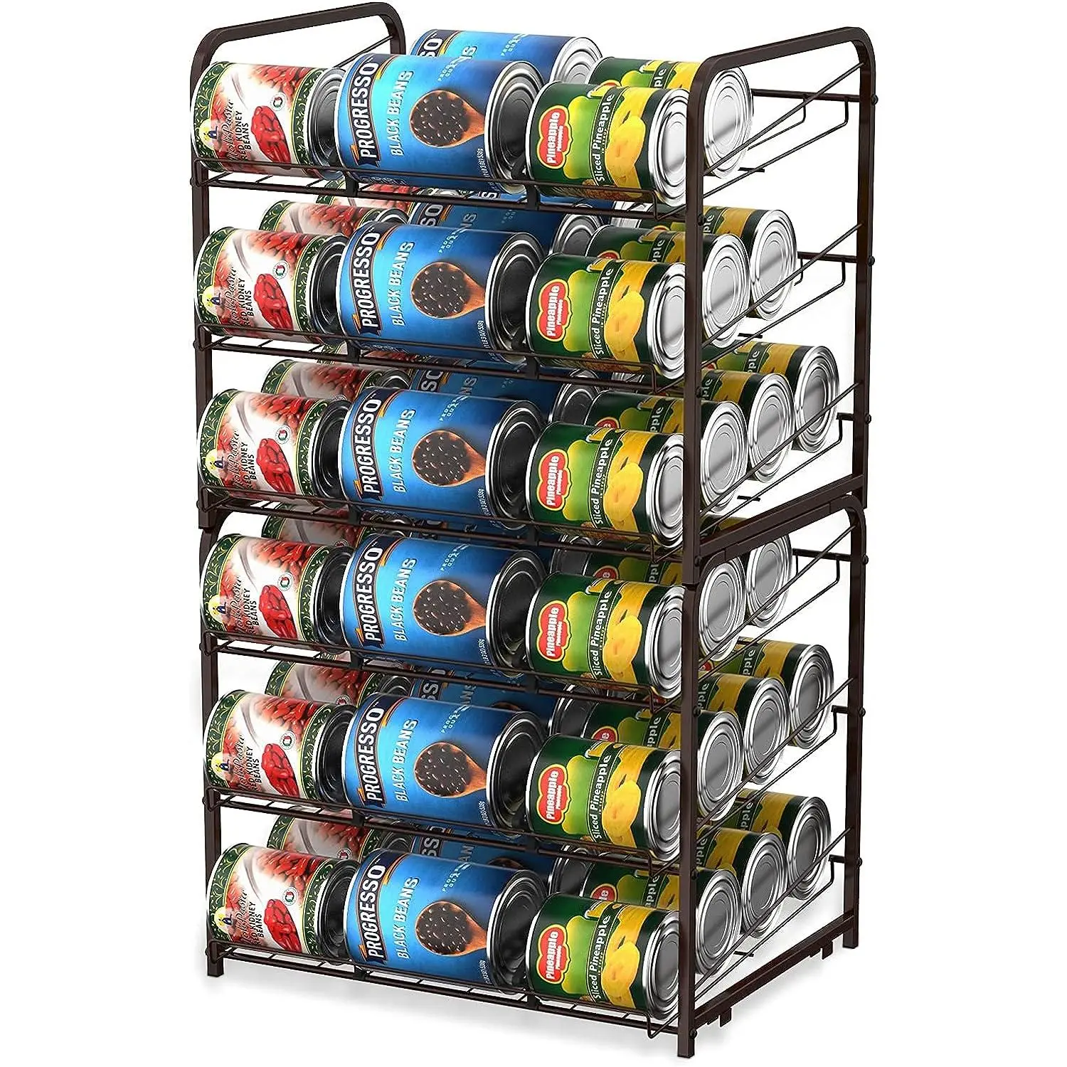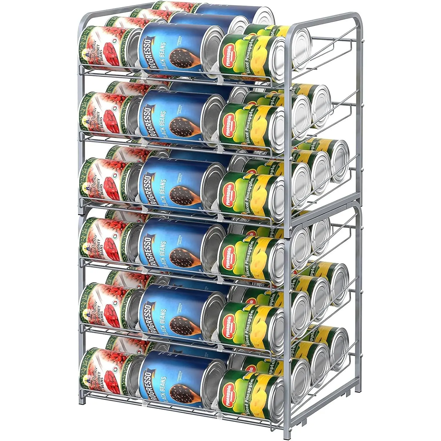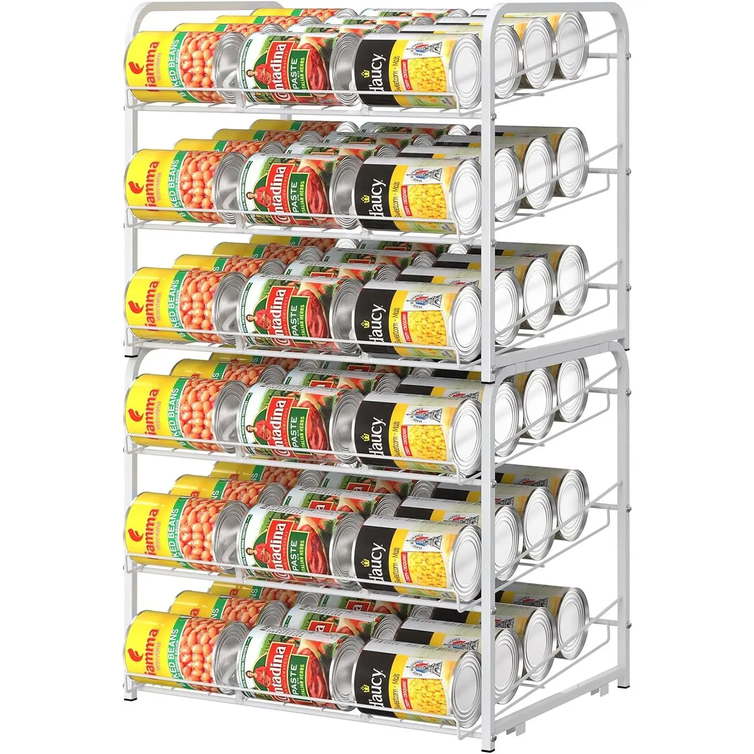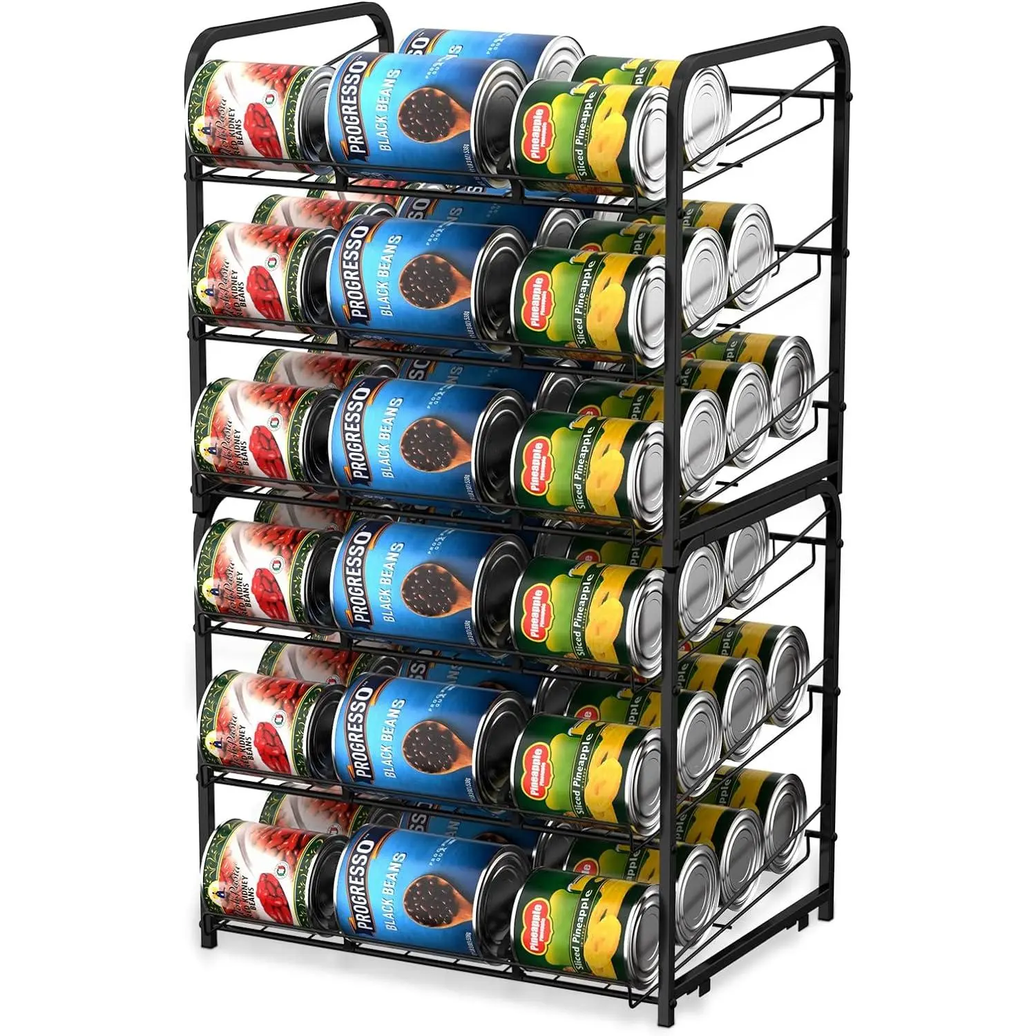 BETTER ORGANIZATION:Stackable can rack organizer storage up to 72 can or variety size can/jars; Make your kitchen/pantry cabinets tidy and better organized with quick access to easily viewable products in this can storage rack