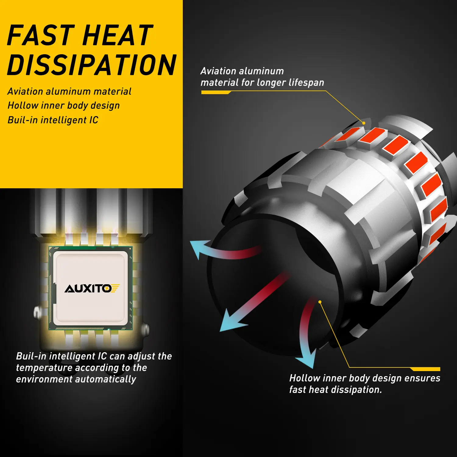 ·Hollow inner body design ensures fast heat dissipation.