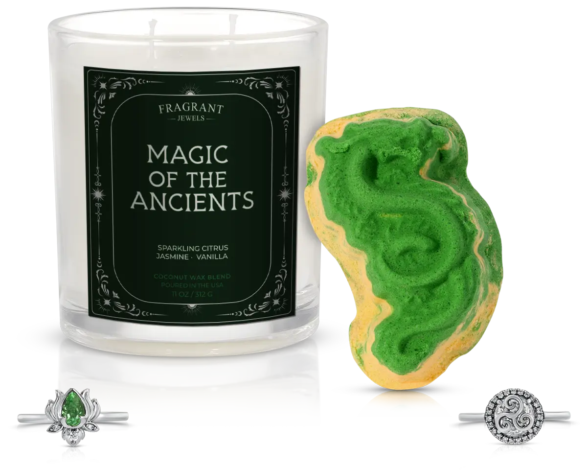 Uncover the forgotten mysteries of the Magic of the Ancients collection. Each candle and bath bomb holds a stunning ring inspired by the global magic of an era when the extraordinary was a part of everyday life. Ignite the flame, immerse in the enchantment, and wear a piece of ancient wonder. Let the magic live on—through you.