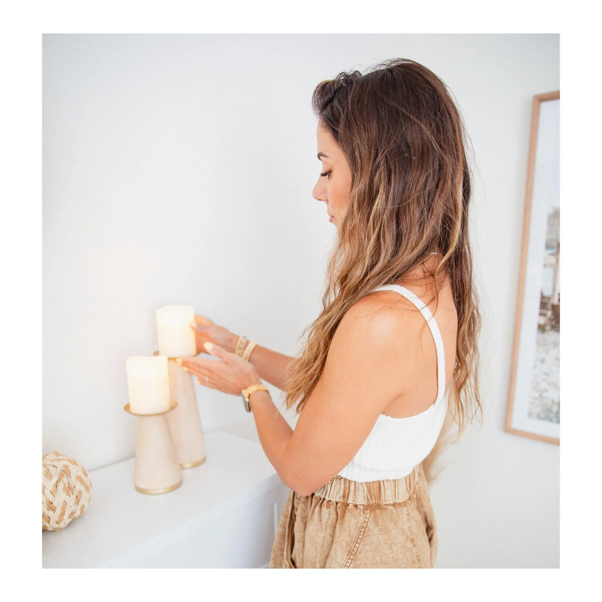 These candle pillars are extremely high-quality. They are made of solid wood and come with the battery operated candles. The candles are operated by a remote control. These candle pillars are an effortless chic stylish addition to your home. #candlepillars #pillars #homedecor