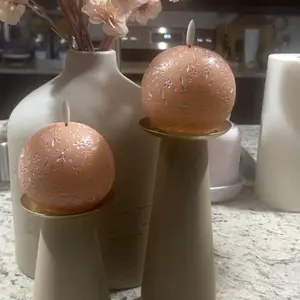 Beautiful candle holder, comes with 2 candles. I’m using the pillar with theses gorgeous spheres candles as well from Qvc