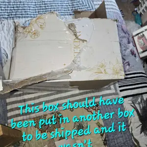 Muy linda y delicada pediré más está la coji estavez siguieron las instrucciones de entrega aunque estaba lloviendo y encontré la caja mojada y abierta no como sale en la foto debieron averla puesto dentro para que no se mojara pediré más pero cdo este en especial lo recomiendo..