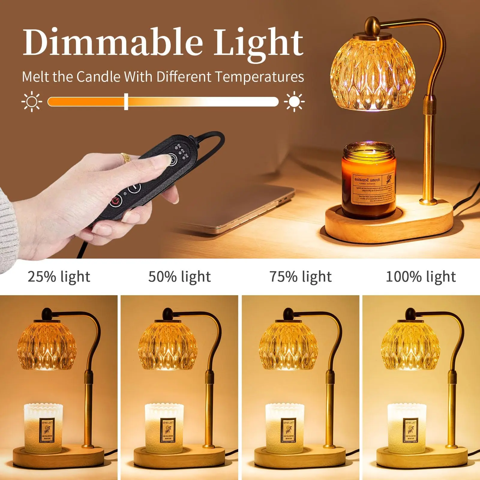 Great product. Fantastic way to elevate candle usage. Having a timer and no flame gives peace of mind. Being able to adjust the light level puts you in complete control of your ambience. You can relax and enjoy the fragrance.
