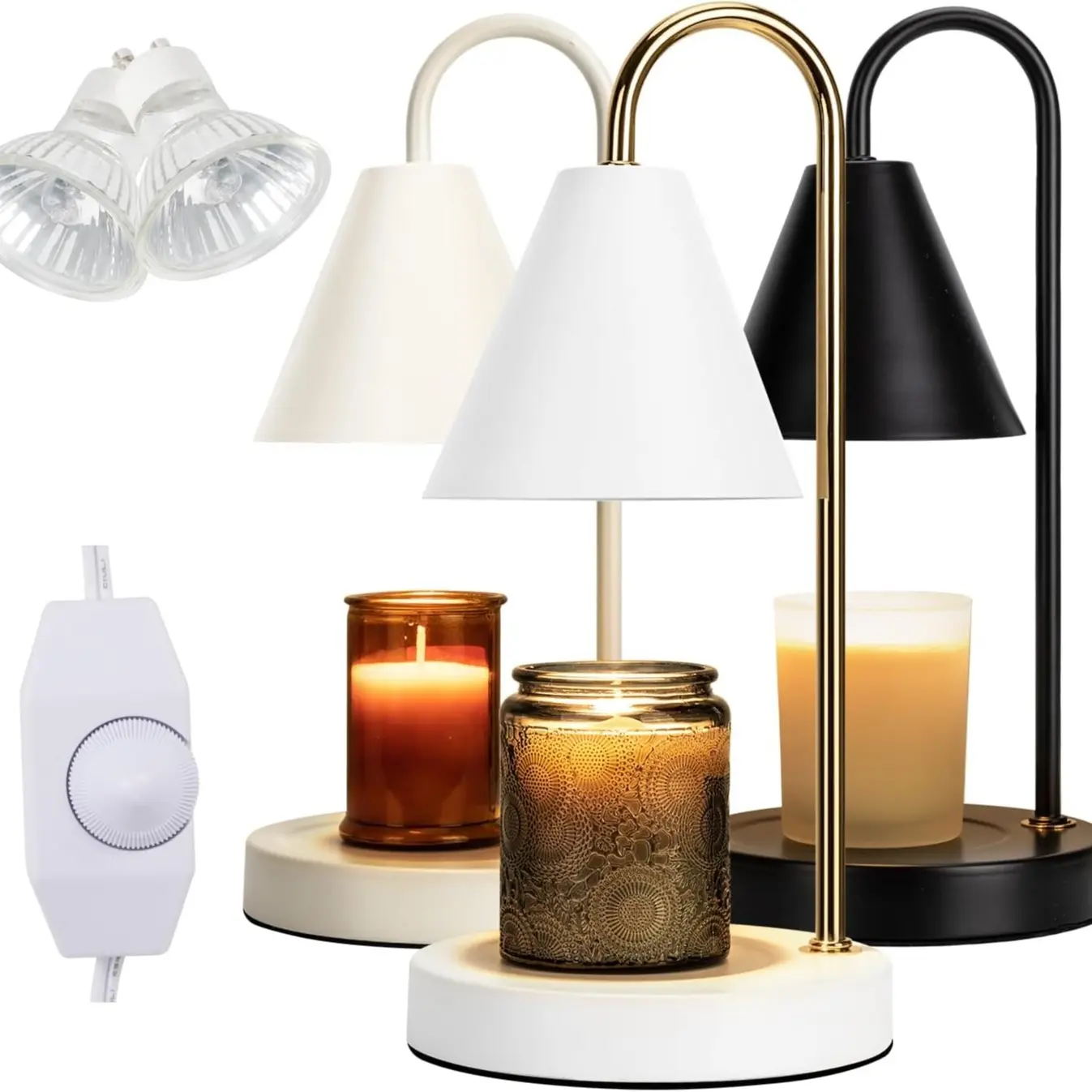 【Efficient & Dimmable】Experience the benefits of fast and efficient fragrance distribution with our electric candle warmer!Using a 50W GU10 halogen bulb(included),it quickly and easily melts candles and wax from the top down,filling your home with your favorite scents in minutes.And with its dimmer control,you can customize the melting speed to your liking.