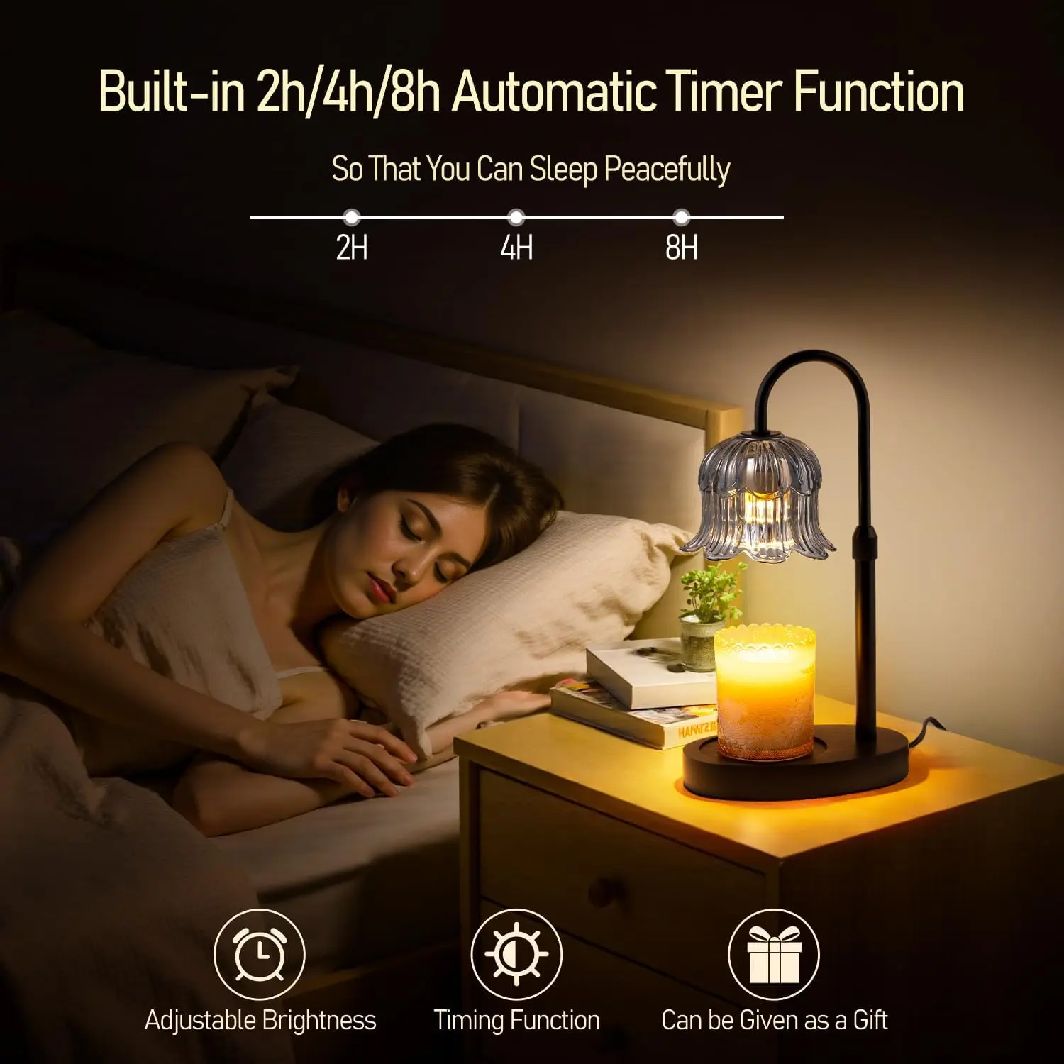 ·[With automatic timer adjustment] adjustable 2/4/8 H timer to ensure safety. Timing function ensures safety and convenient to turn off the warm wax lamp. Safer to use. Let you sleep at ease