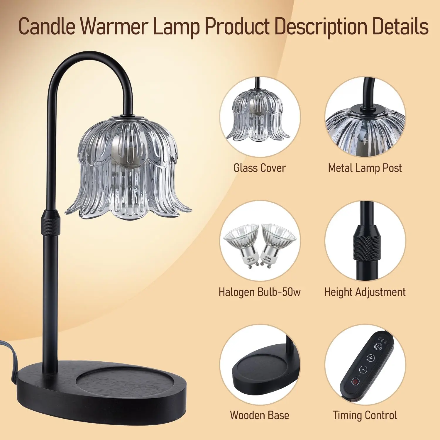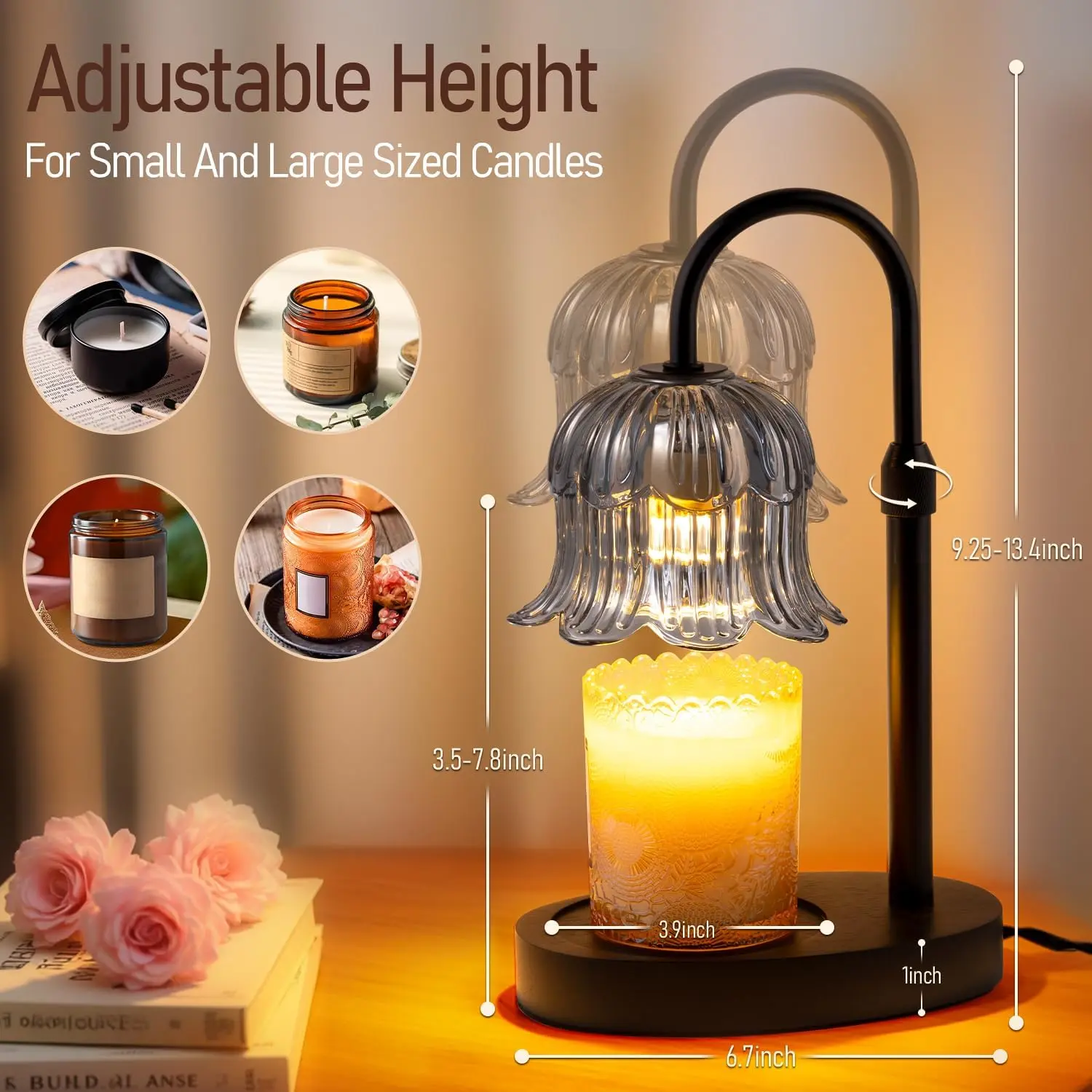 ·[Height adjustable] suitable for various sizes of candles, you can adjust the height of the lamp pole to control the speed of candle melting, to meet your different needs.