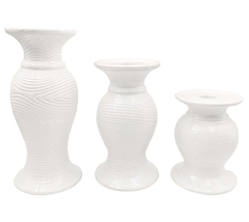 Complete your decor with this trio of tasteful candleholders from Temp-tations® so versatile and can use 3 ways! From Temp-tations® Includes 6", 8", and 10" candleholders@QVC, Inc #temptations #candleholder #vase #homedecorideas #pedestal