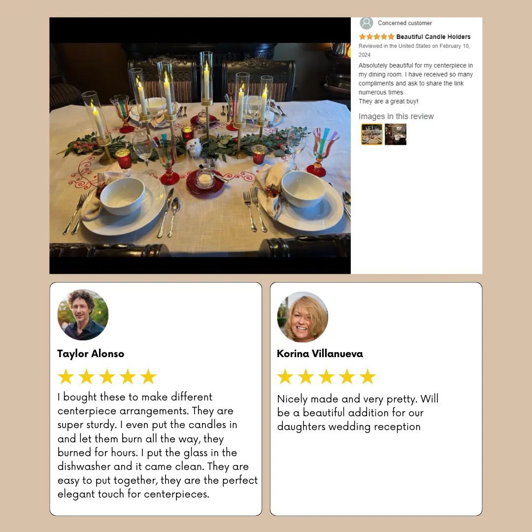 Candles NOT included. Elevate your home décor with these luxury gold hurricane candlestick holders, perfect for weddings, holiday tablescapes, romantic dinners, and elegant home styling. This set of tall taper candle holders features a sleek gold metal base and a removable clear glass hurricane cover that adds height, sparkle, and protection from drafts. Whether you’re creating a glam centerpiece, staging content, or decorating for an event, these candle holders instantly make any space look timeless, upscale, and photo-ready. The modern minimalist design pairs beautifully with florals, greenery, or seasonal décor — giving you that effortless designer look. #christmas #christmasdecor #home #candles #tiktokshopholidayhaul