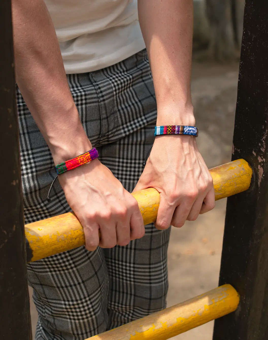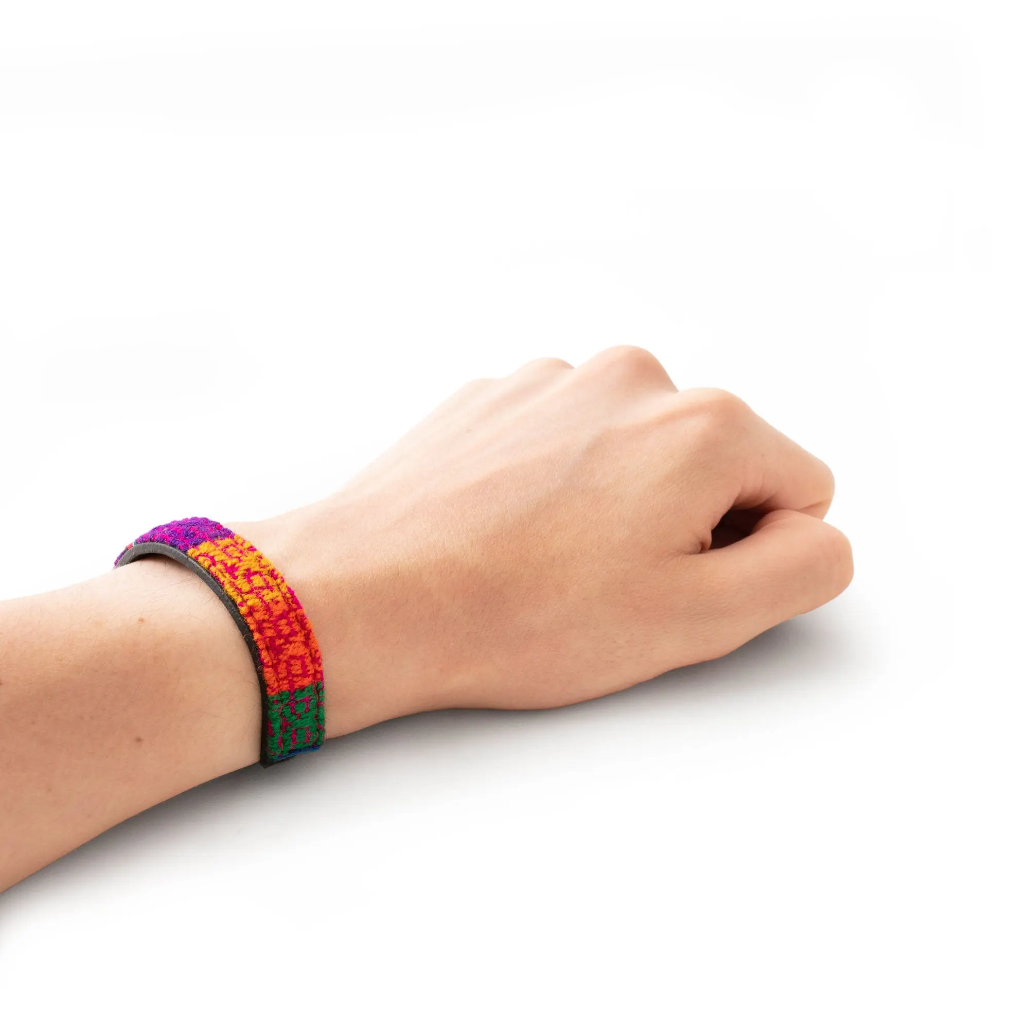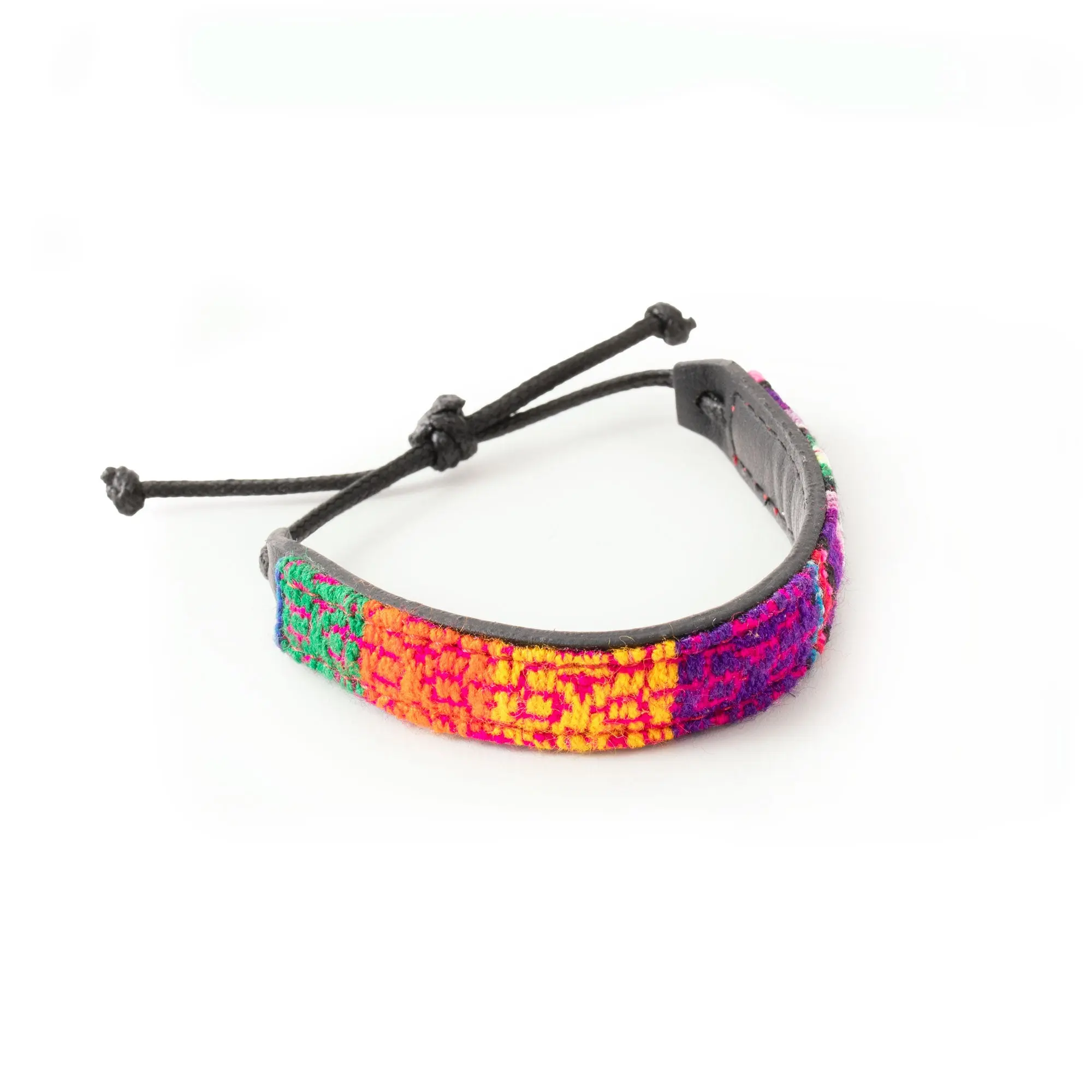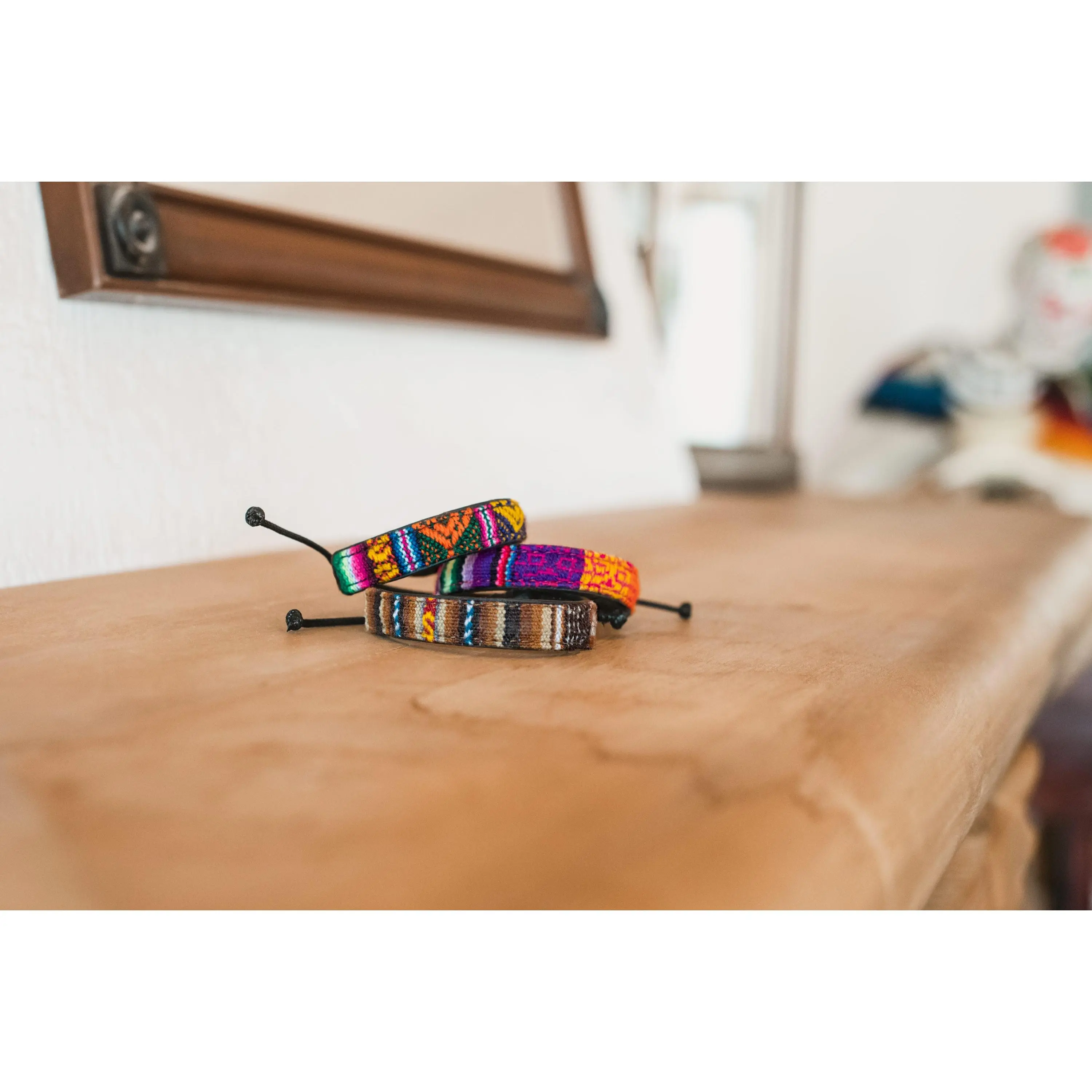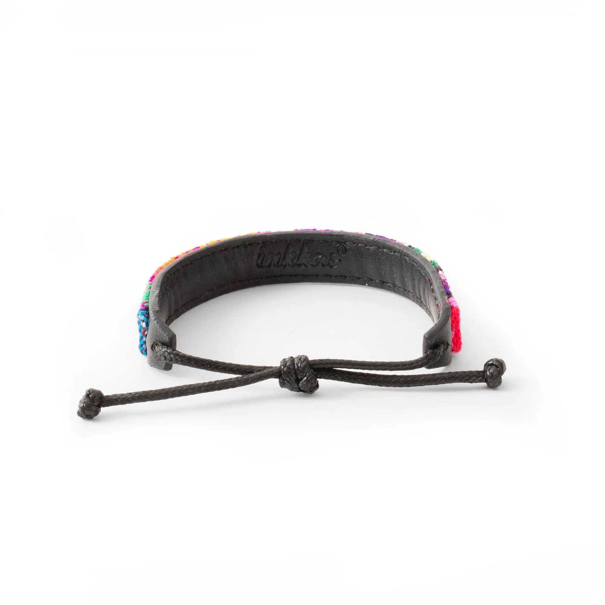 Our handcrafted Candy textile from Peru features vibrant colors and pairs seamlessly with a buttery black vegan leather base. The adjustable strap makes it easy to fasten, adjust, and remove as desired. Match to your Inkkas shoes or mix-and-match with all of our globally inspired patterns.