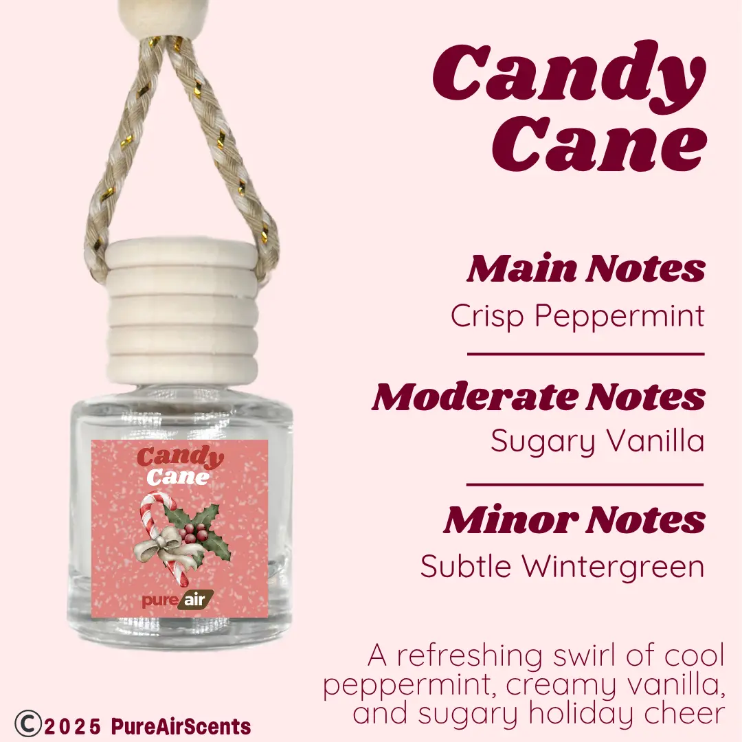 Candy Cane Pure Air Scented Air Freshener Oil Diffuser - Hangable Glass Woody Design - Lasts 60+ Days - Fragrance Oil Diffuser