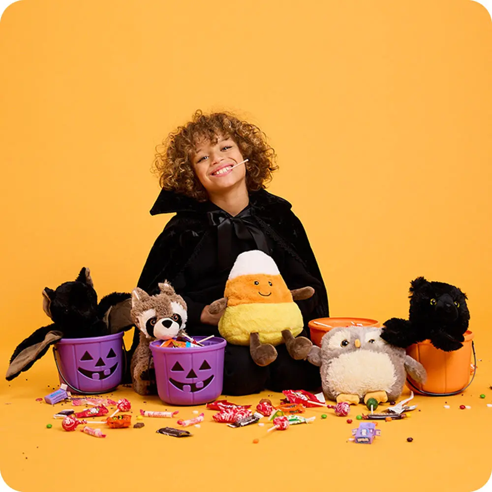 Sweeten up your self-care with Candy Corn Warmies. Shaped like the classic Halloween treat, this adorable plush warms in the microwave for soothing relief, is gently weighted to ease stress, and lavender-scented for calm.