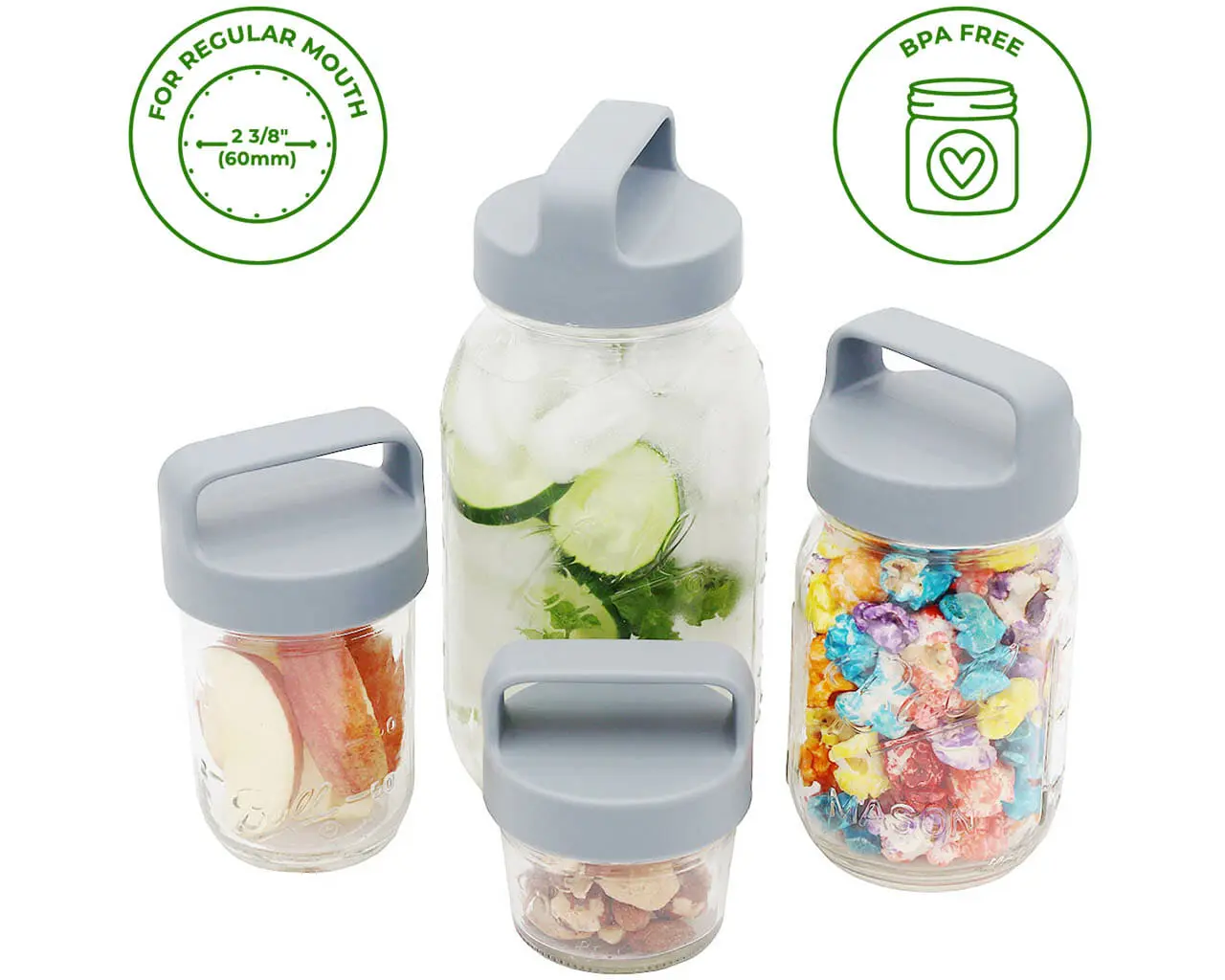 5. Gray Plastic Handle/Canister Lids for Regular Mouth Mason Jars 4 Pack