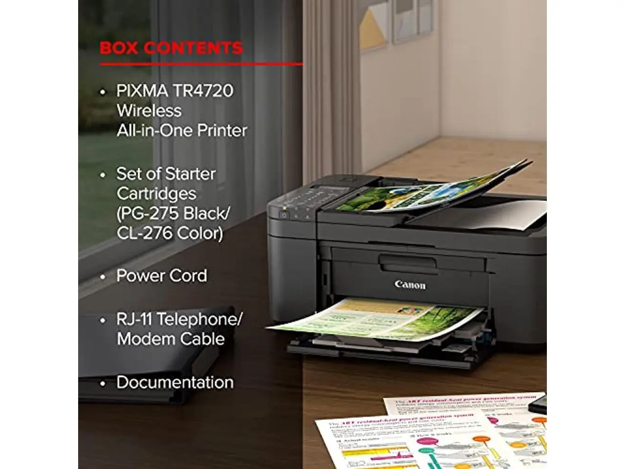 Compact, Versatile, Easy-to-UseFor all your work or home printing needs, the PIXMA TR4720 Wireless All-in-One Printer has you covered. Enjoy simple setup through the Canon PRINT Inkjet/SELPHY App and an easy to install 2-Cartridge hybrid ink system and front loading 100-sheet paper tray. Big on performance, the PIXMA TR4720 is equipped with Auto 2-Sided Printing, an Auto Document Feeder for multi-page scanning, and built-in Fax functionality. With a variety of connectivity options, you'll be able to do it all from your PC or mobile devices - plus, the PIXMA TR4720 is compatible with Canon apps for printing, scanning, creative projects and more.